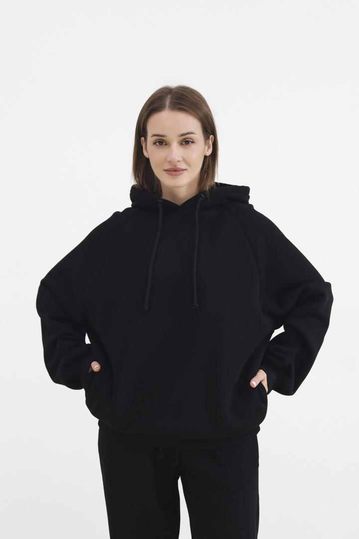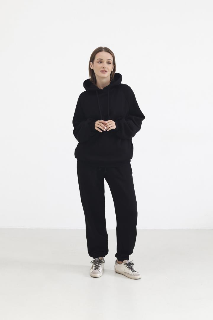 Головна Жінкам Спортивні костюми Теплий жіночий костюм з худі та джогерами Чорний