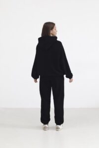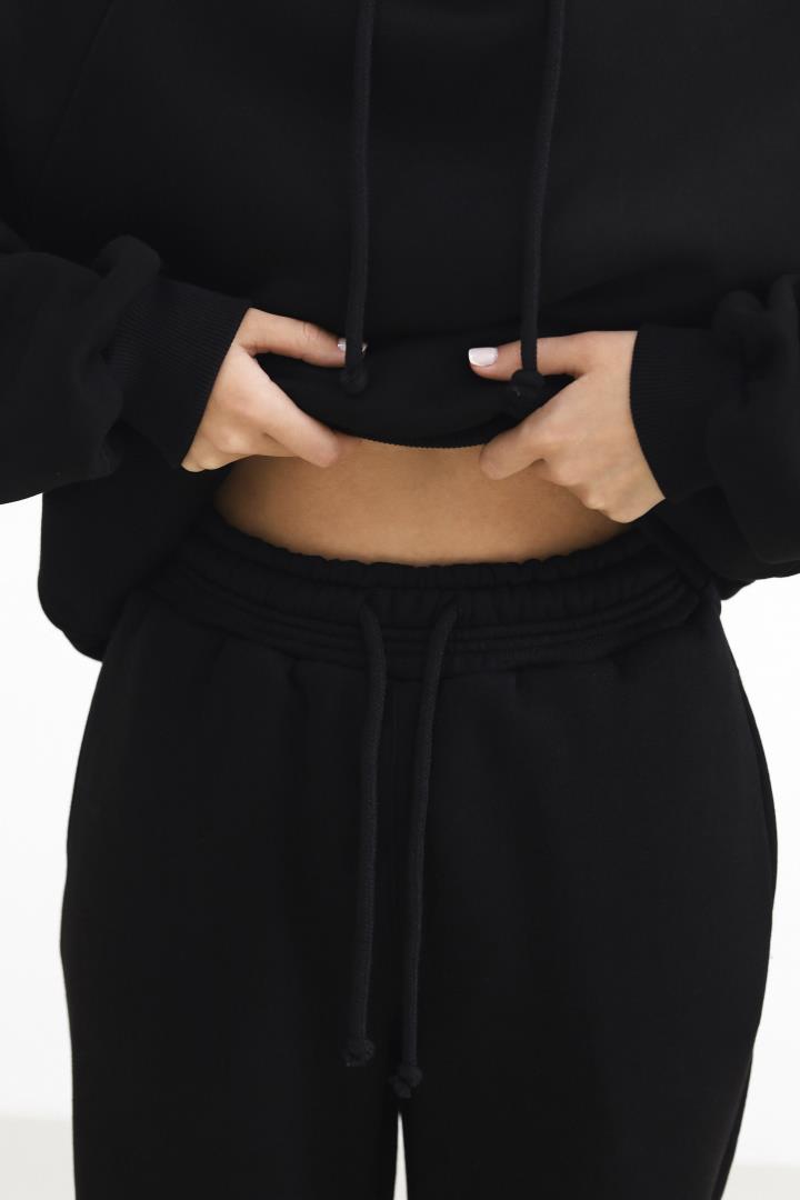 Теплий жіночий костюм з худі та джогерами Чорний