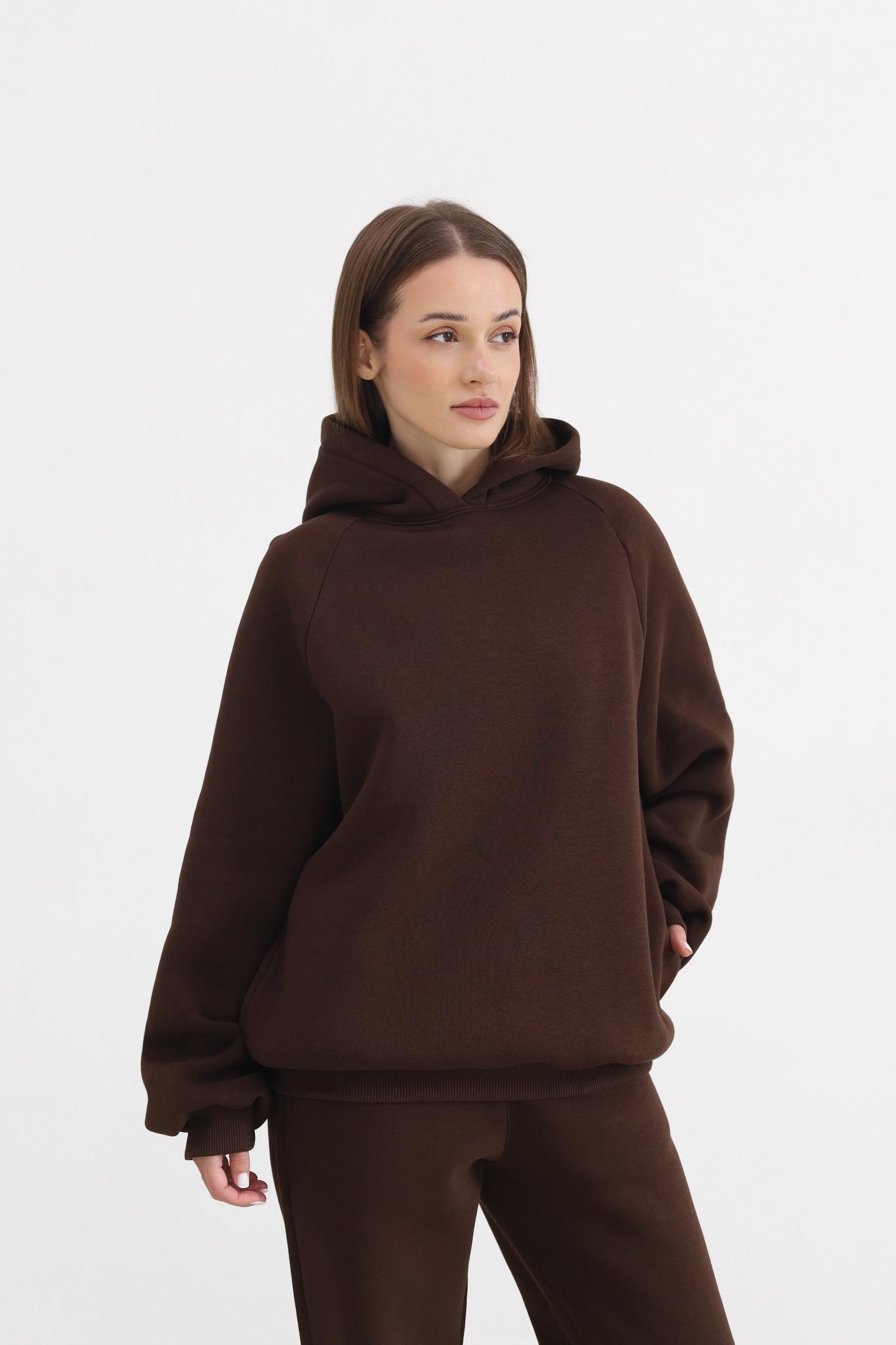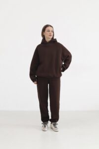 Головна Жінкам Спортивні костюми Теплий жіночий костюм з худі та джогерами Шоколад