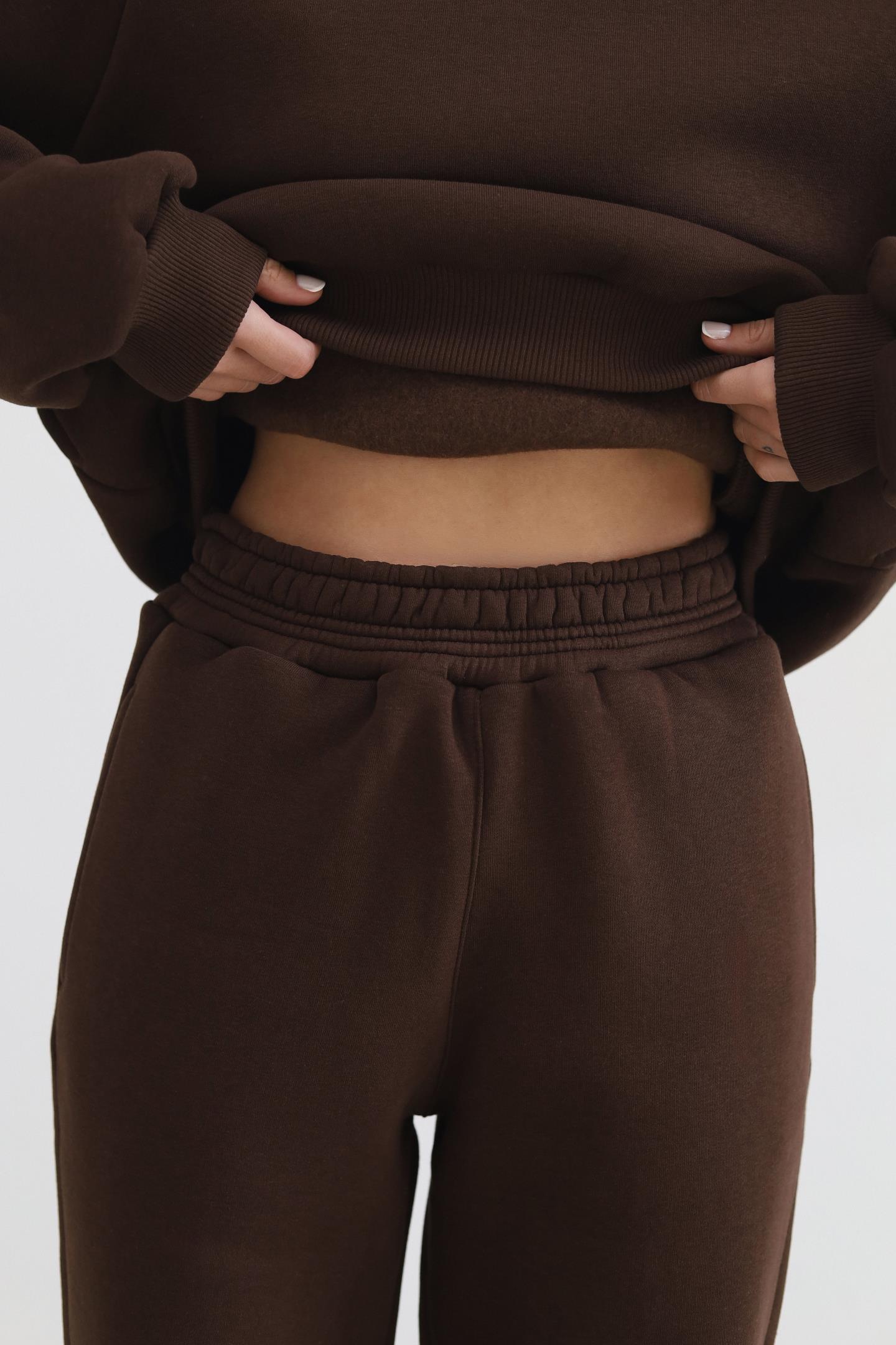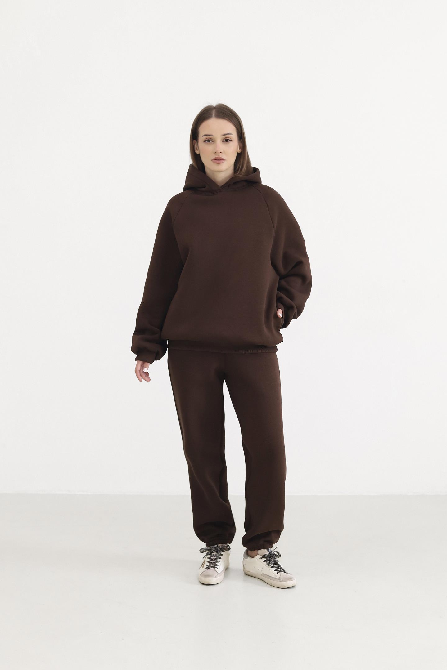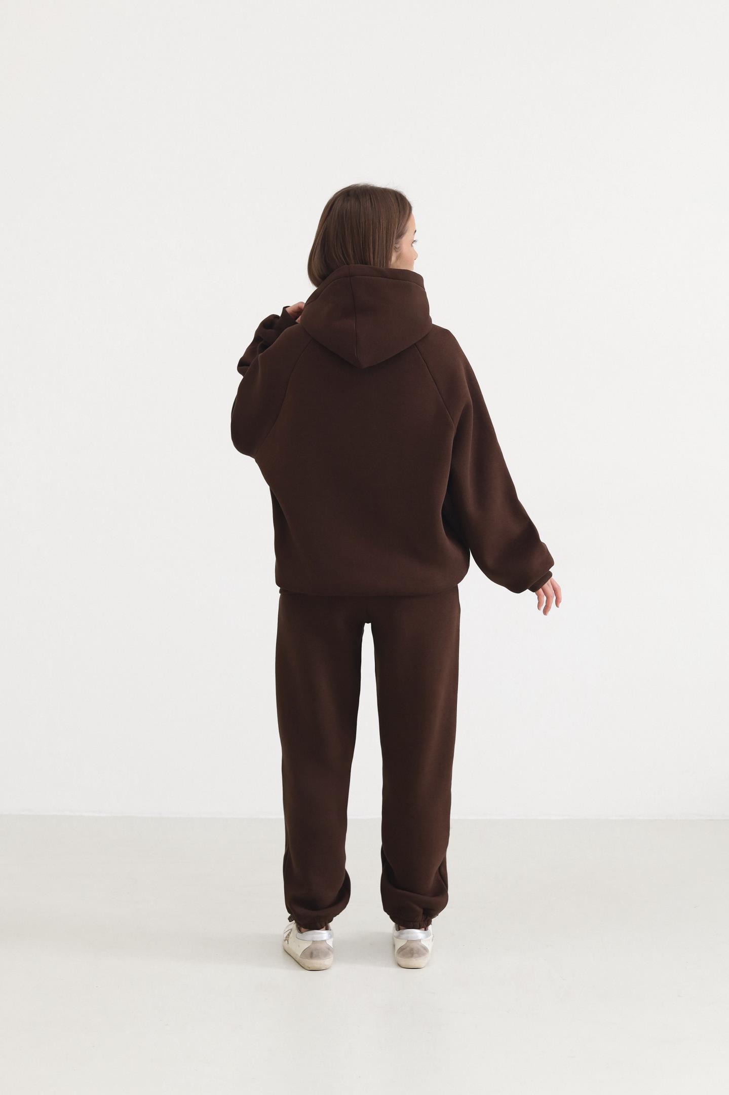 Теплий жіночий костюм з худі та джогерами Шоколад