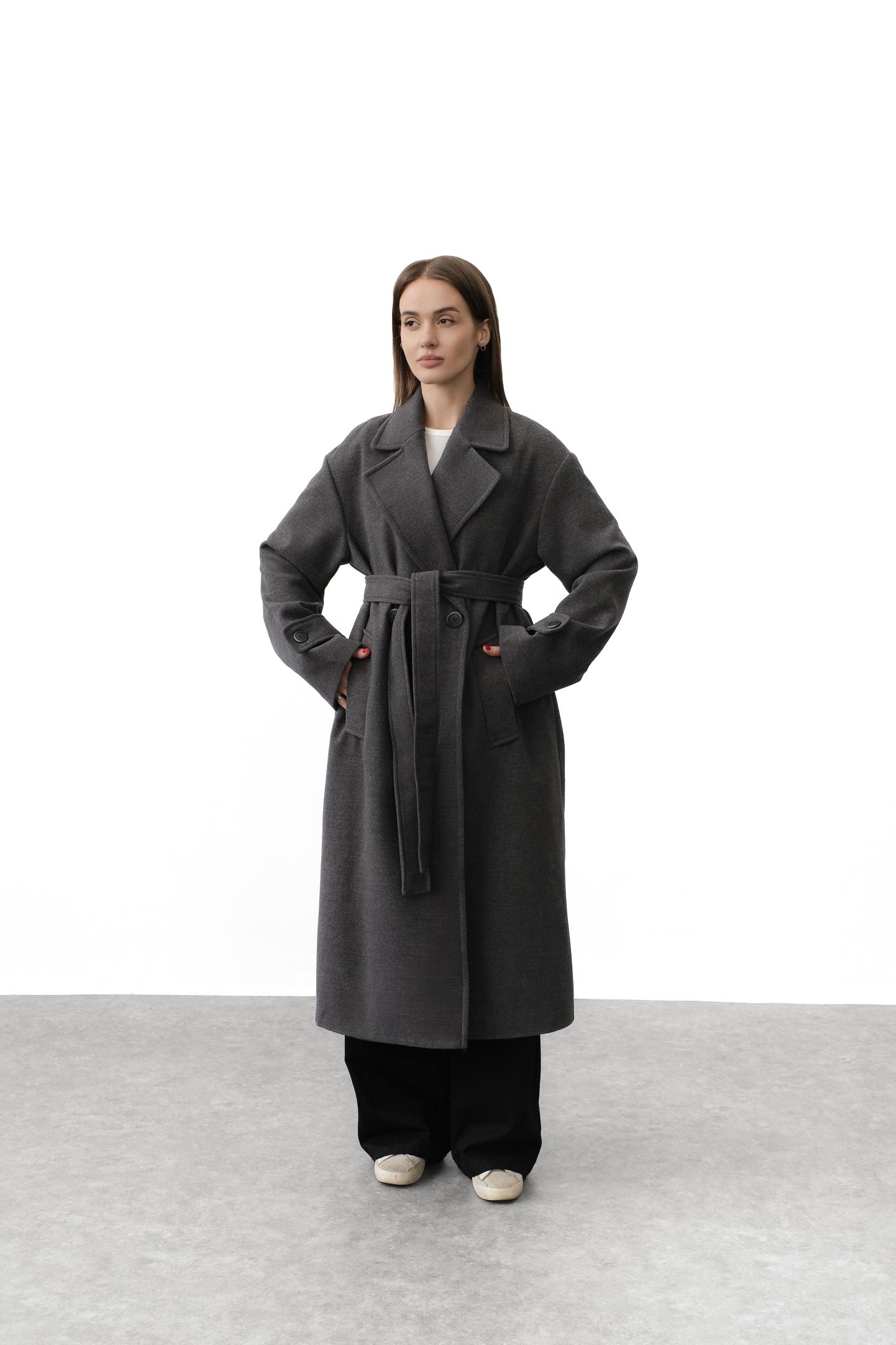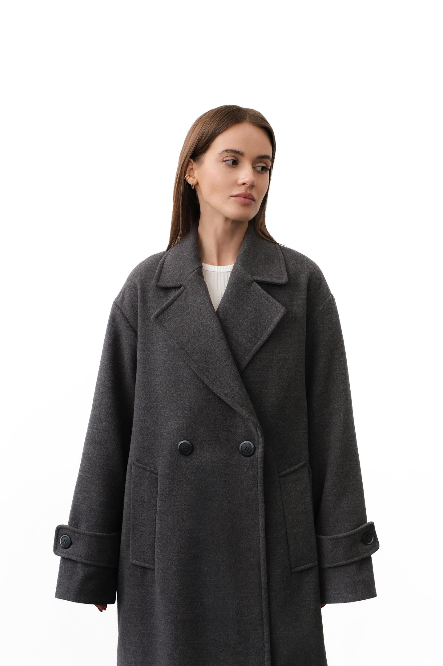 Трендове двобортне пальто прямого oversize-силуету -стильна база з виразним настроєм. Застібається на ґудзики, має великі накладні кишені та манжети з хлястиками. Поєднує якісні матеріали й продуманий дизайн, підкреслюючи індивідуальність образу. Легко вписується в діловий і casual стиль.