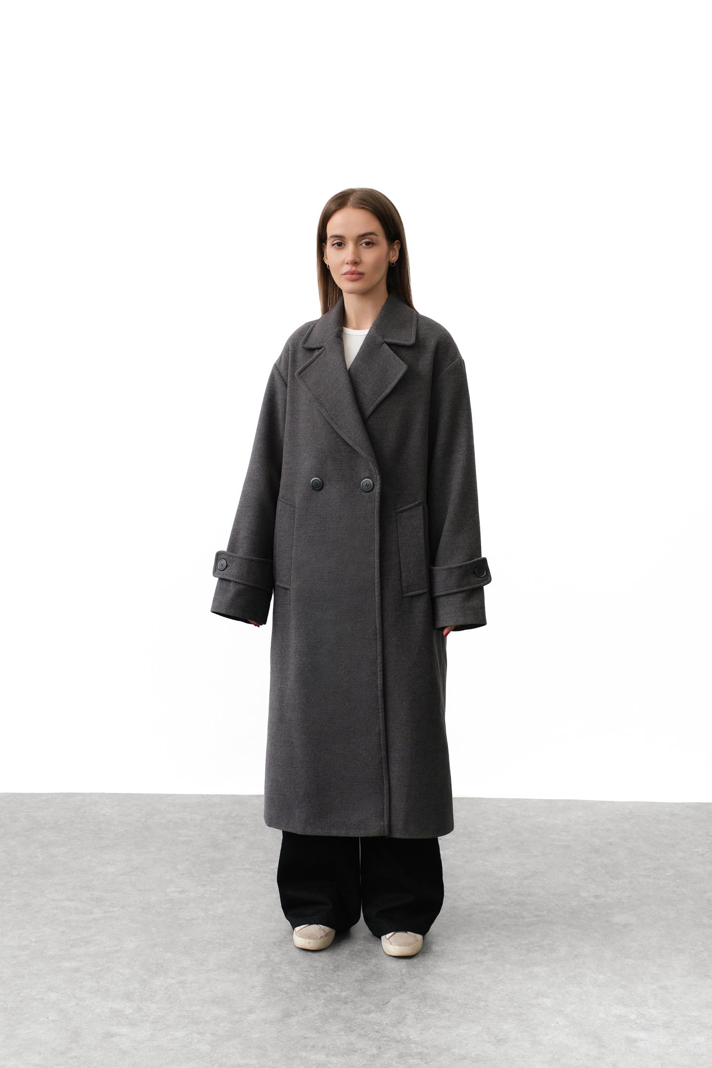 Трендове двобортне пальто Антрацит