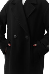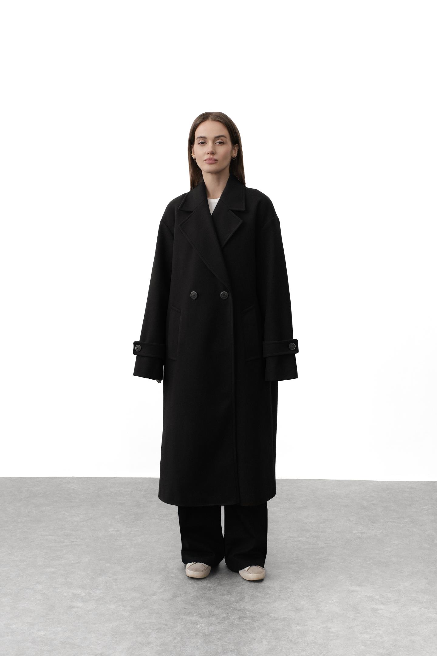 Трендове двобортне пальто прямого oversize-силуету -стильна база з виразним настроєм. Застібається на ґудзики, має великі накладні кишені та манжети з хлястиками. Поєднує якісні матеріали й продуманий дизайн, підкреслюючи індивідуальність образу. Легко вписується в діловий і casual стиль.