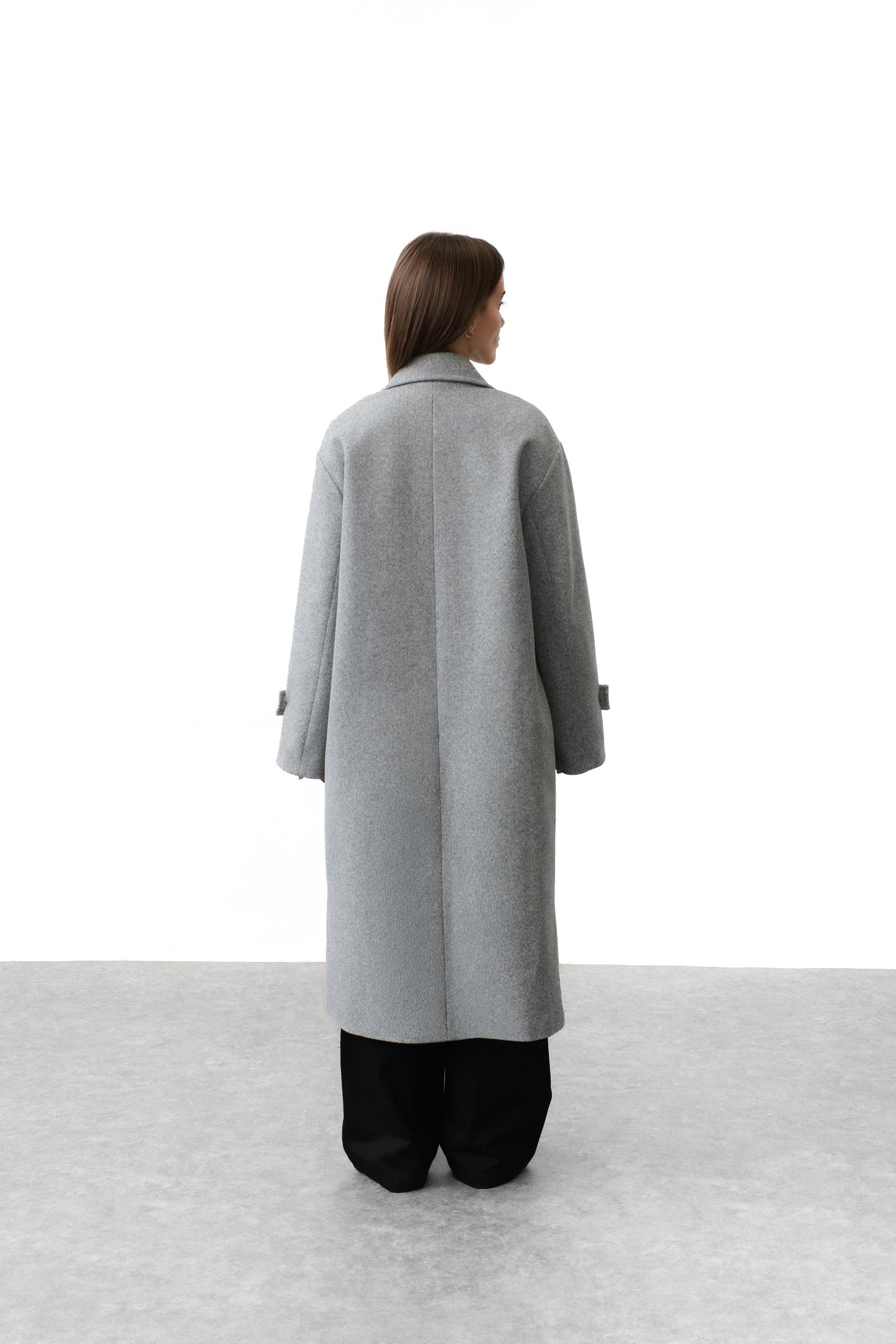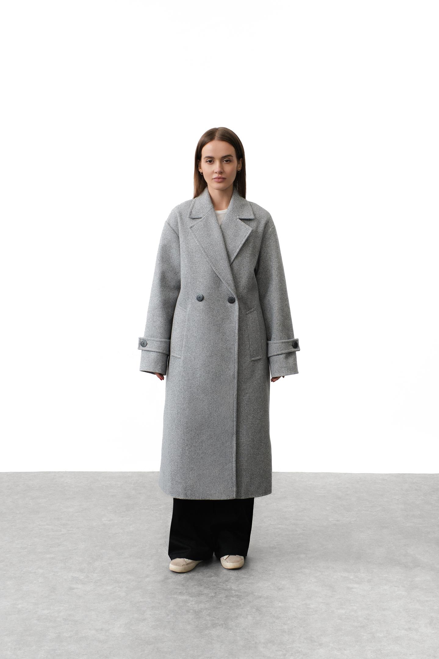 Трендове двобортне пальто прямого oversize-силуету -стильна база з виразним настроєм. Застібається на ґудзики, має великі накладні кишені та манжети з хлястиками. Поєднує якісні матеріали й продуманий дизайн, підкреслюючи індивідуальність образу. Легко вписується в діловий і casual стиль.