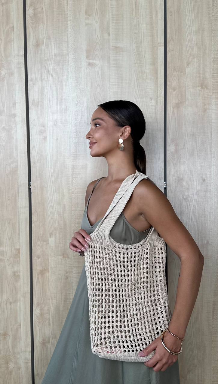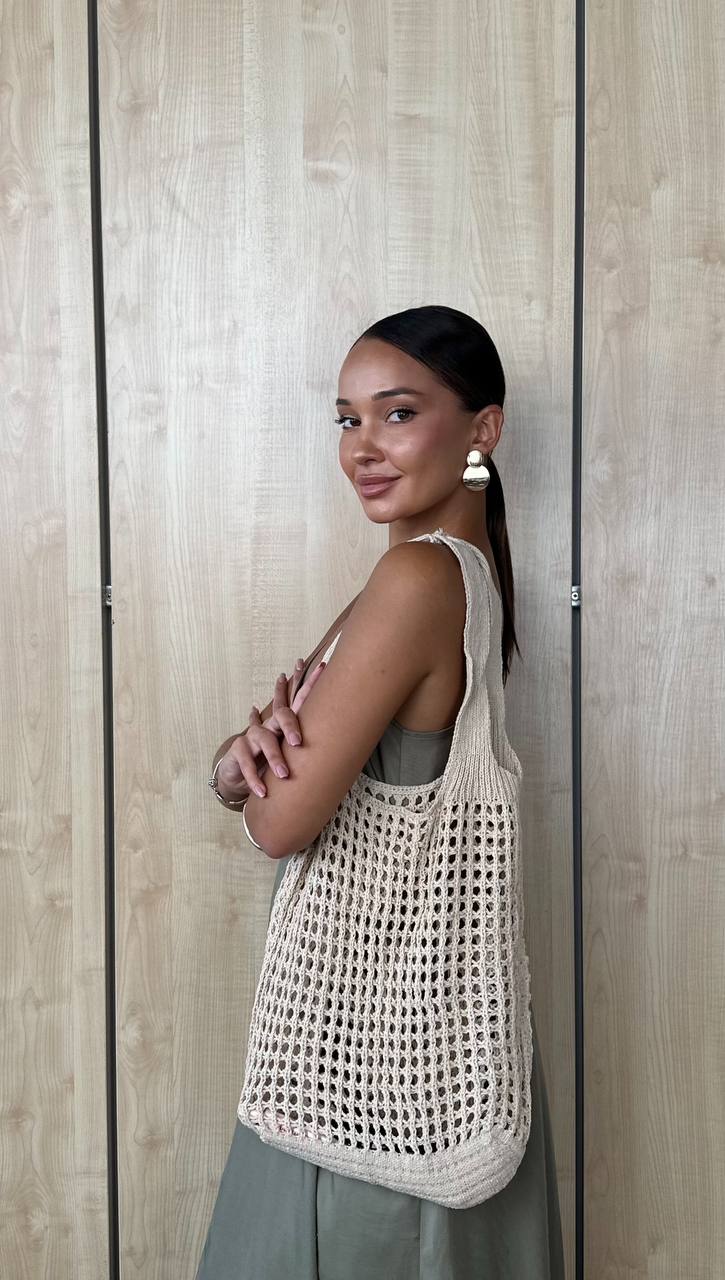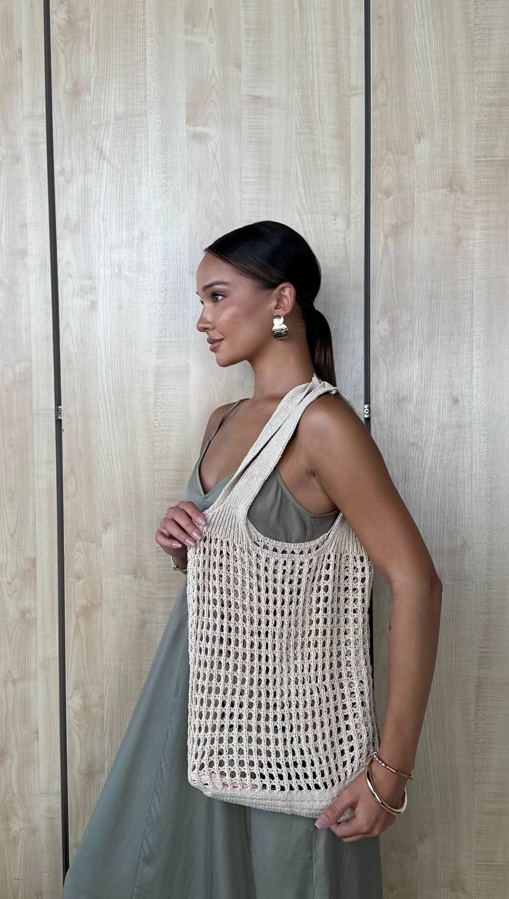 Стильна в'язана сумка-шопер — легка, містка і багатофункціональна. Її сітчаста в'язка додає текстури будь-якому образу, а місткість робить її ідеальною для покупок, прогулянок містом чи відпочинку на морі