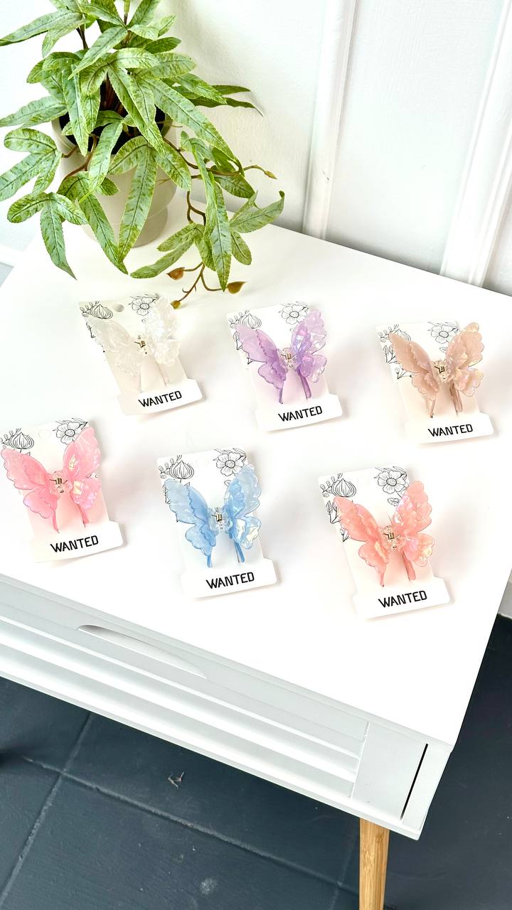 Витончена заколка-краб у формі метелика з подвійними крильцями. Напівпрозорий акрил із перламутровим сяйвом переливається різними відтінками. Ідеальна для легкого, романтичного або повсякденного образу, додає зачісці елегантності. Доступна у ніжних пастельних тонах