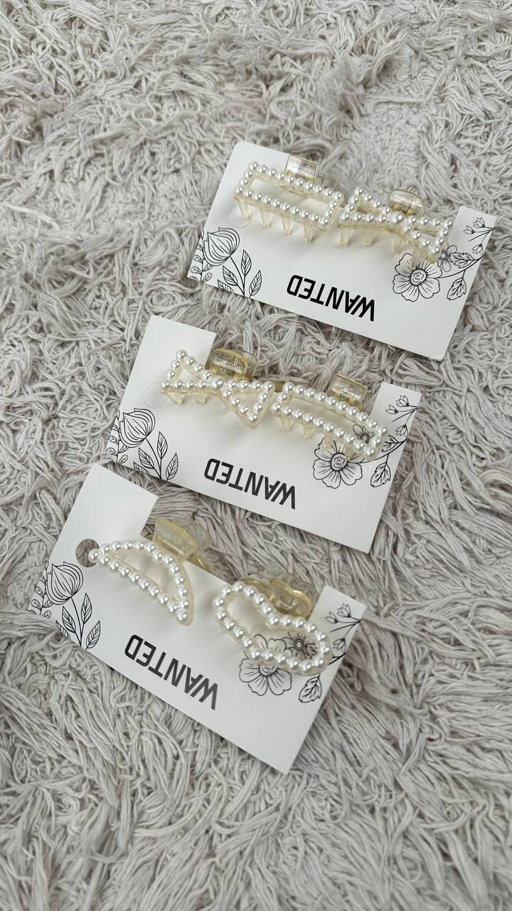 Елегантні крабики для волосся — грайливий акцент у вашому образі. Набір із чотирьох форм — серце, прямокутник, видовжений прямокутник і хрестик — виконаний із напівпрозорого пластику з ніжним акцентом із перлин. Ідеальні для щоденних зачісок і святкових образів, додають витонченості та стилю