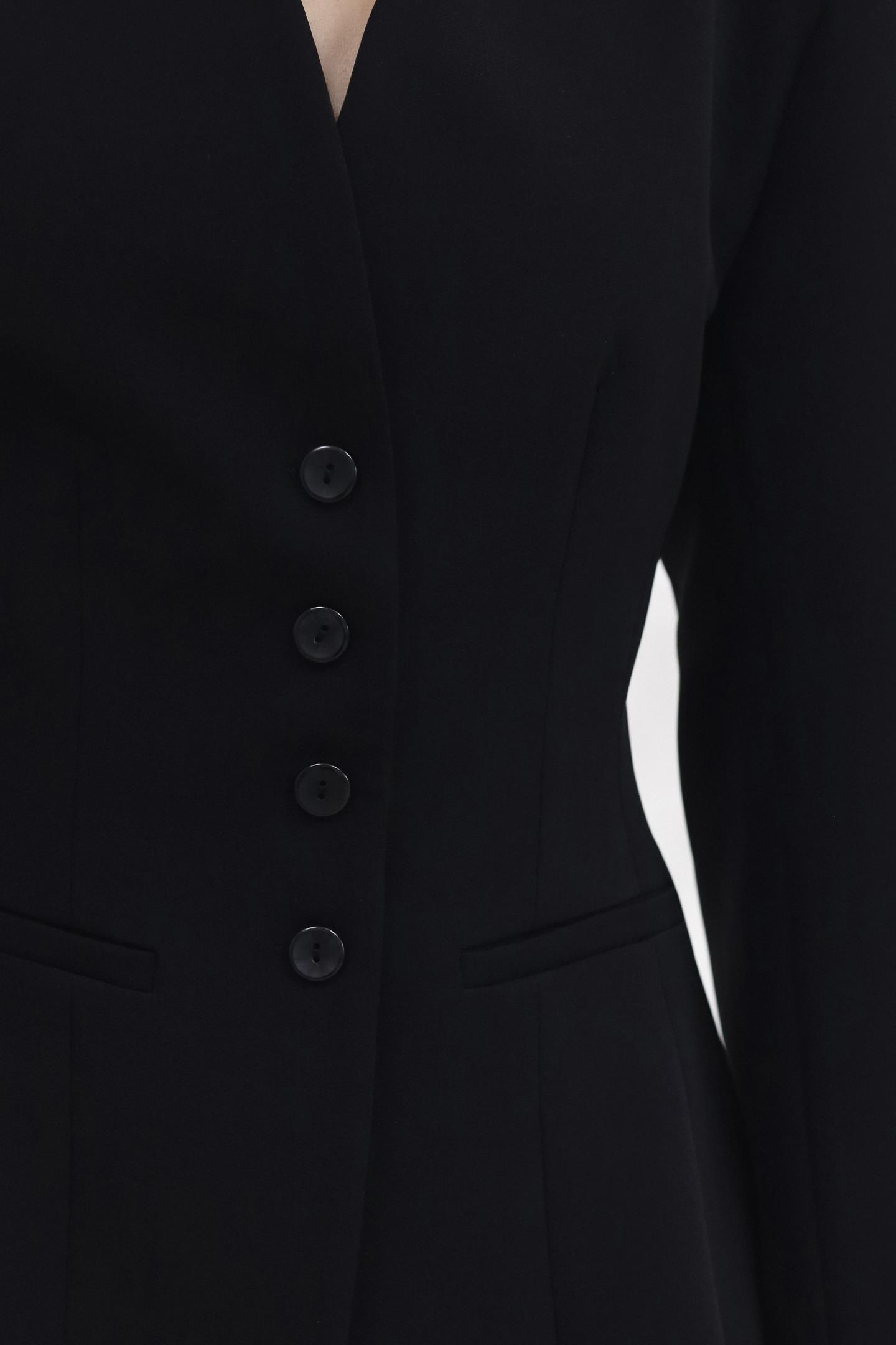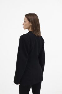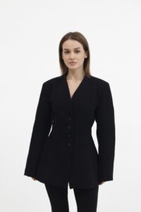 Подовжений піджак з виразною талією та V-вирізом створює охайний, витончений силует. Структурований крій і акуратні ґудзики додають образу стильної стриманості. Модель легко поєднується з класичними брюками, спідницями чи джинсами, підкреслюючи твою елегантність у будь-який день.