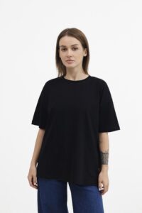 Футболка вільного крою з бавовни — легка, м’яка й комфортна. Натуральна тканина дихає, розслаблений силует і широкі рукави не сковують рухів та створюють стильний повсякденний образ. Комфортна oversize модель легко поєднується з будь-якими базовими речами.