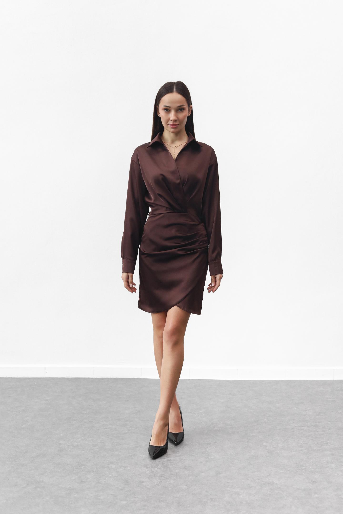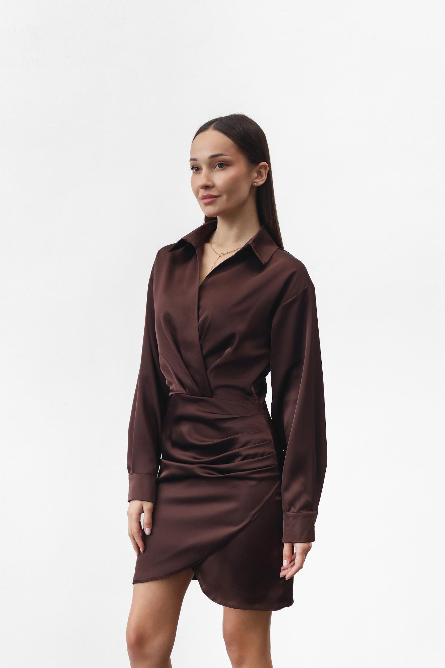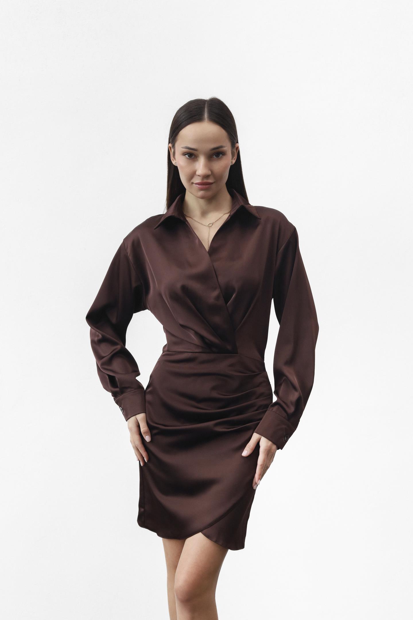 Жіноча шовкова сукня з ефектом запаху Шоколад