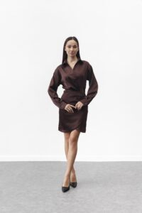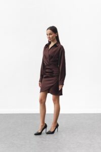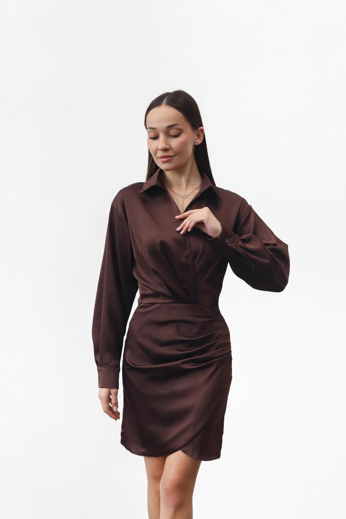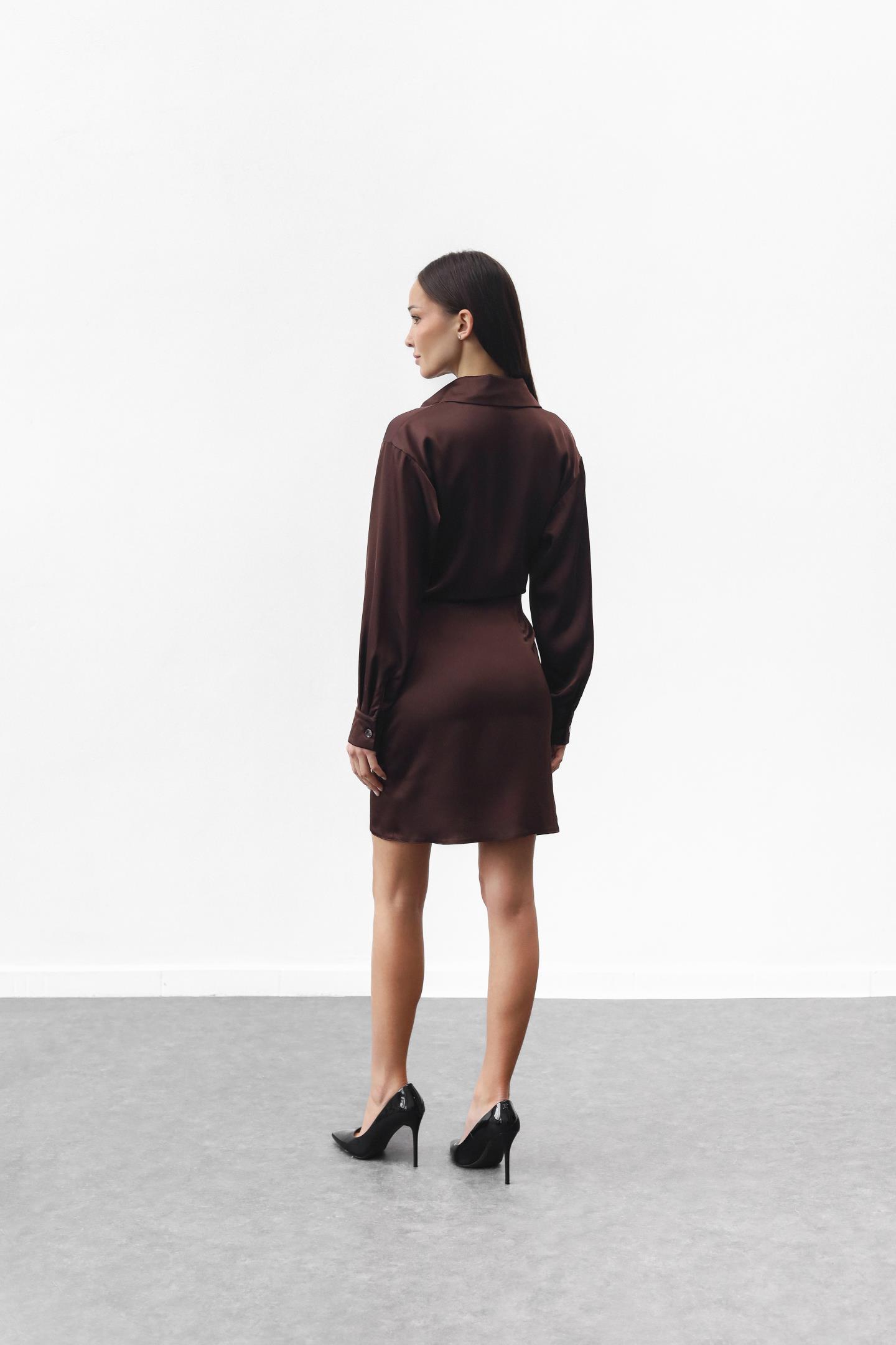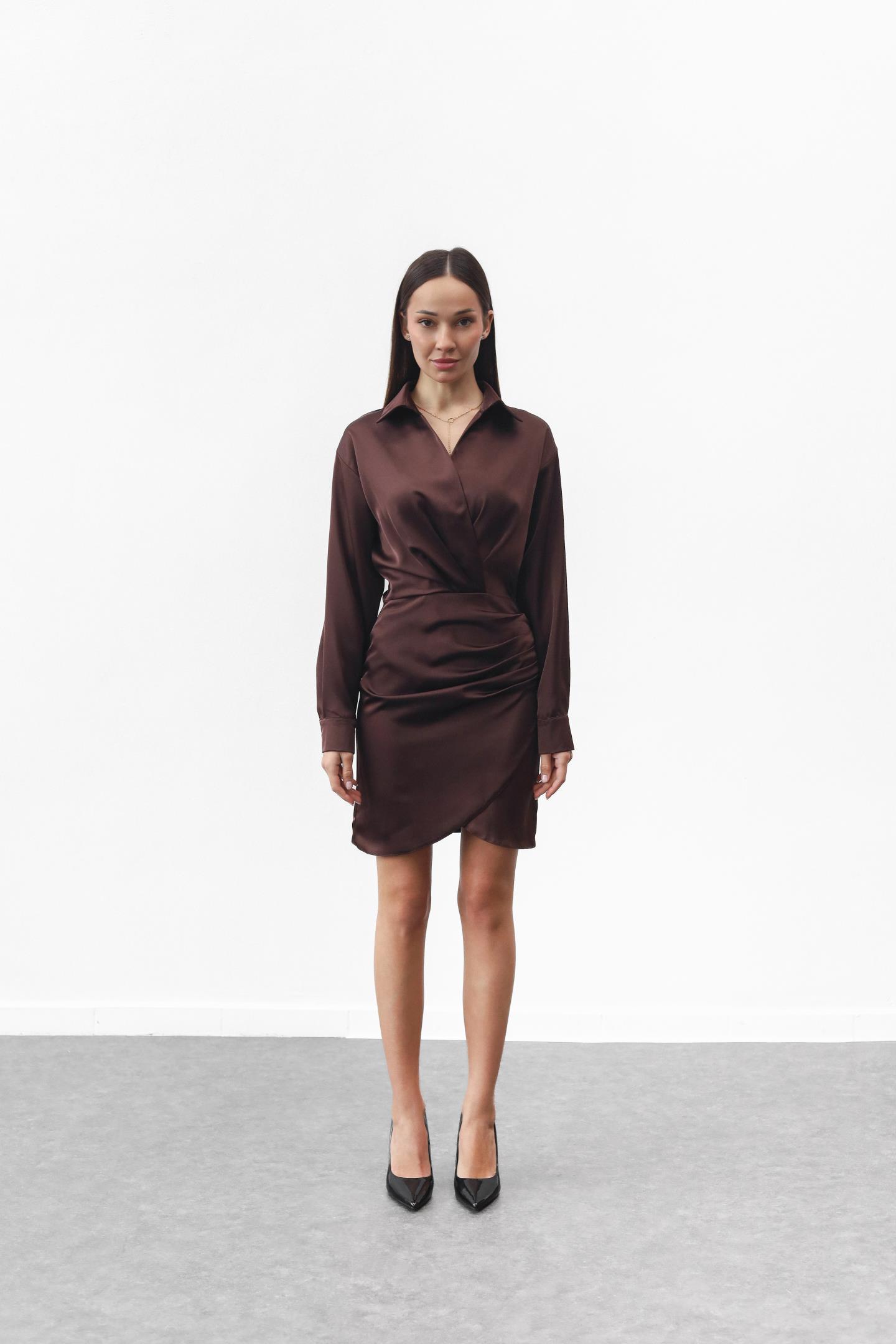 Жіноча шовкова сукня з ефектом запаху Шоколад