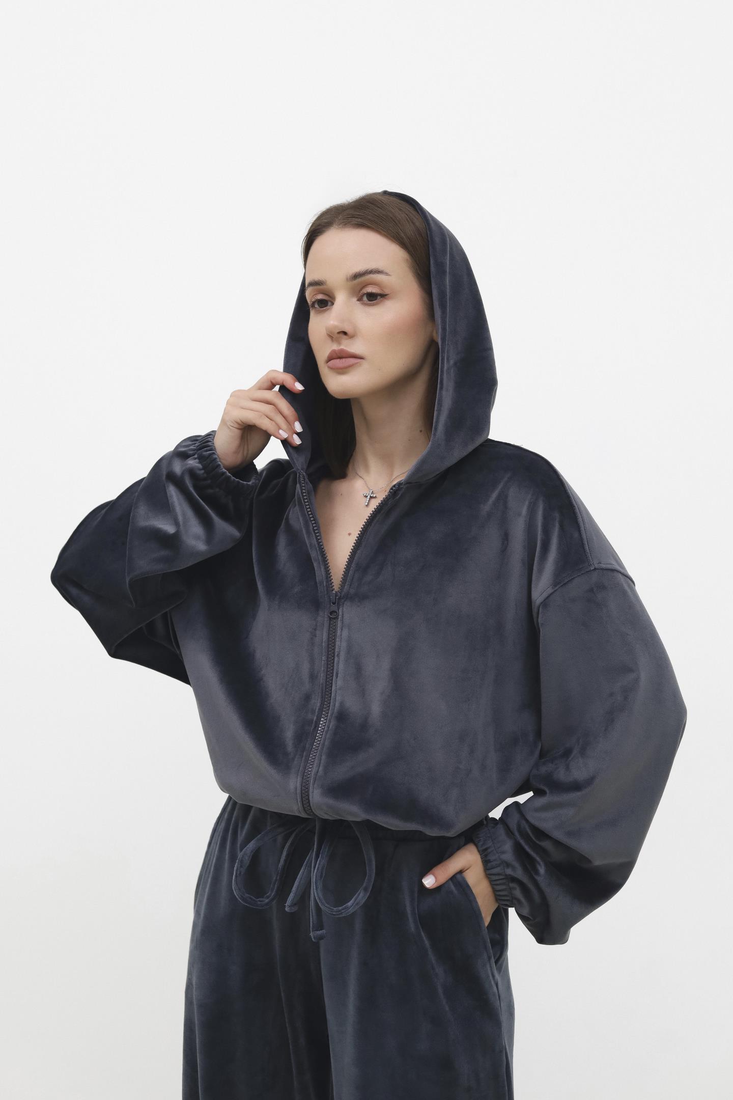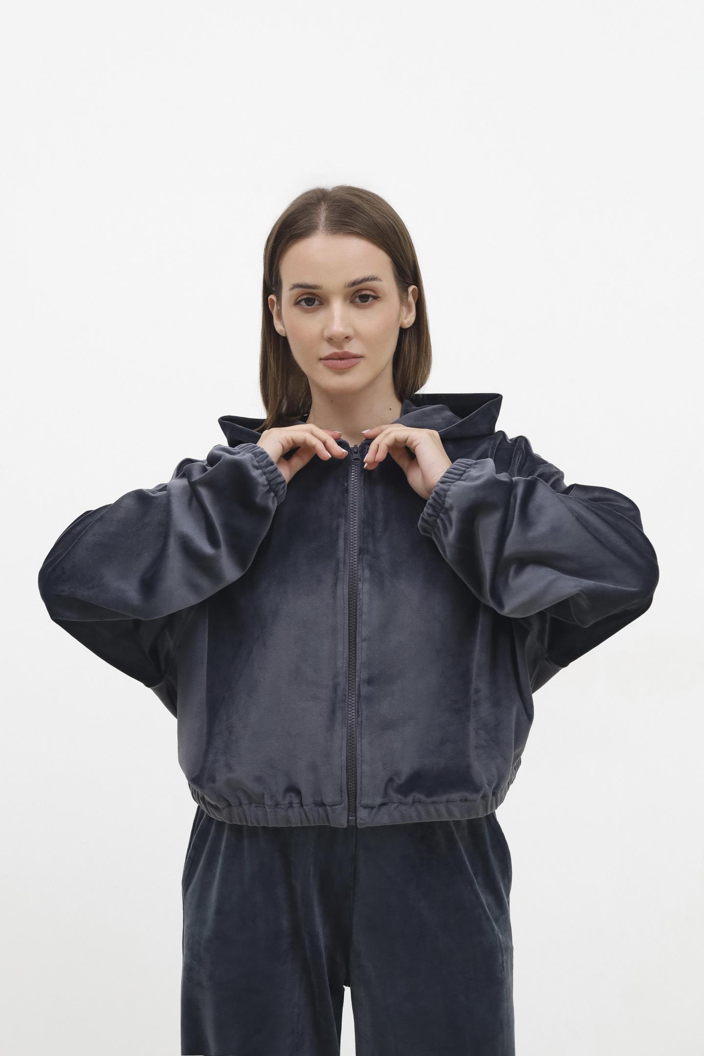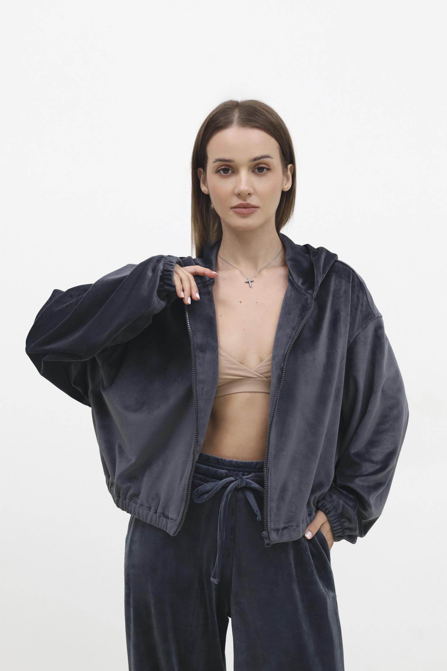Жіноча велюрова кофта на блискавці Антрацит