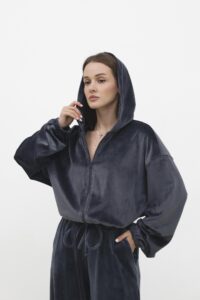 Велюрова кофточка на блискавці — м’яка, зручна та стильна. Легкий блиск велюру додає образу елегантності, а капюшон і комфортна посадка забезпечують затишок. Ідеальний варіант для прогулянок і щоденних casual-образів — стане надійною базою у вашому гардеробі.