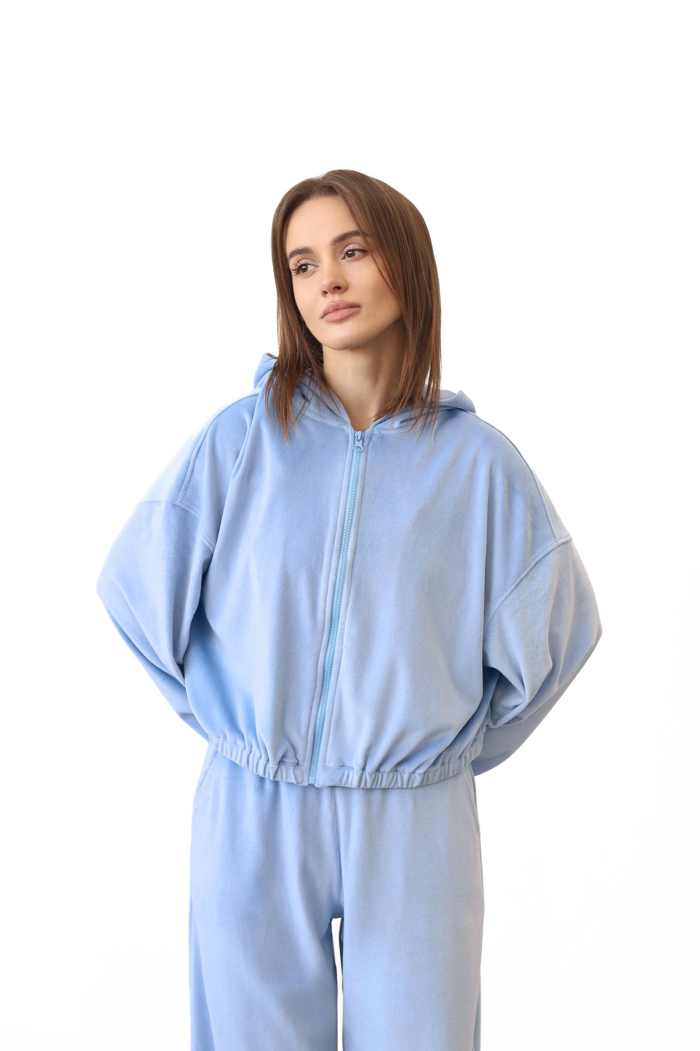 Велюрова кофточка на блискавці — м’яка, зручна та стильна. Легкий блиск велюру додає образу елегантності, а капюшон і комфортна посадка забезпечують затишок. Ідеальний варіант для прогулянок і щоденних casual-образів — стане надійною базою у вашому гардеробі.