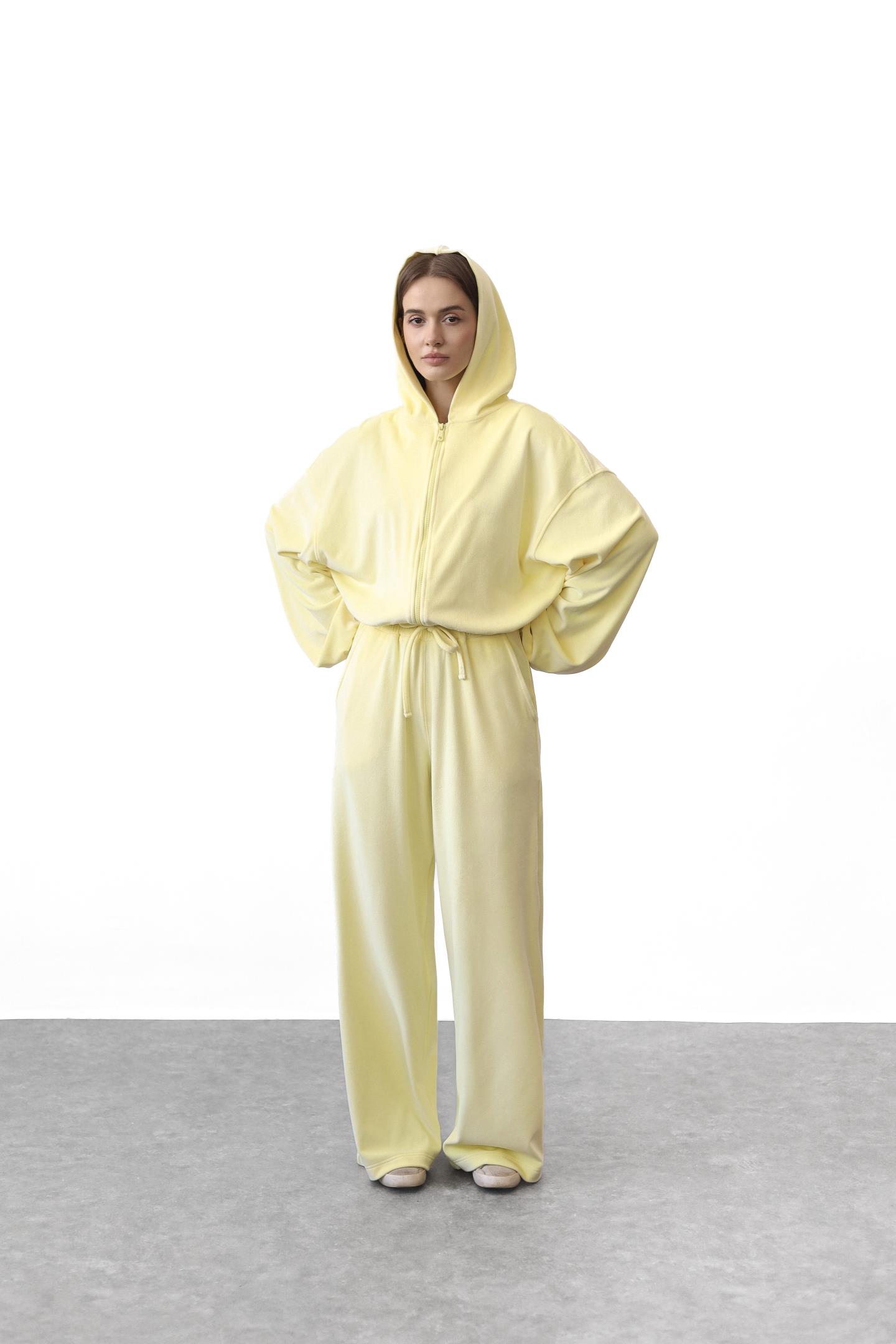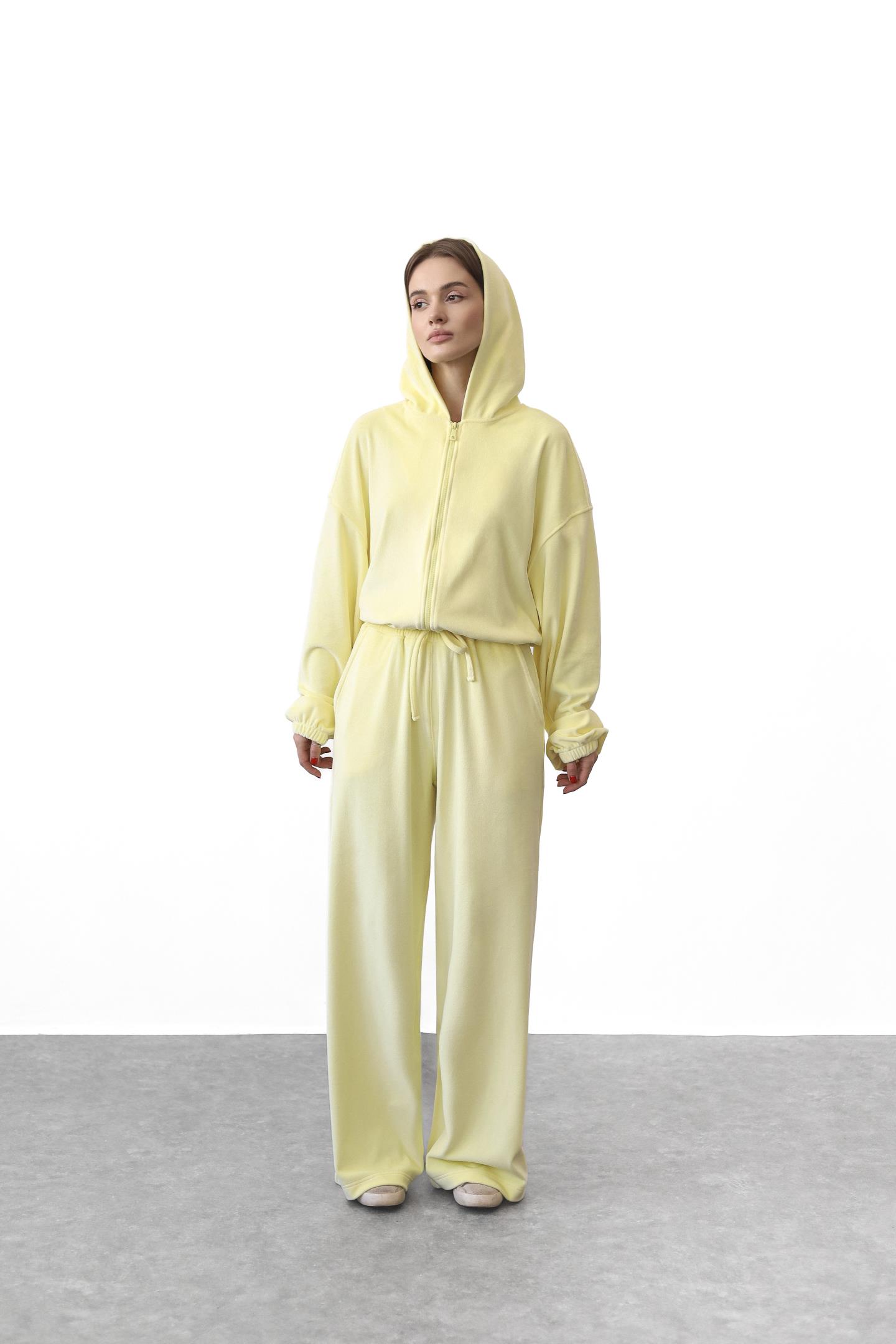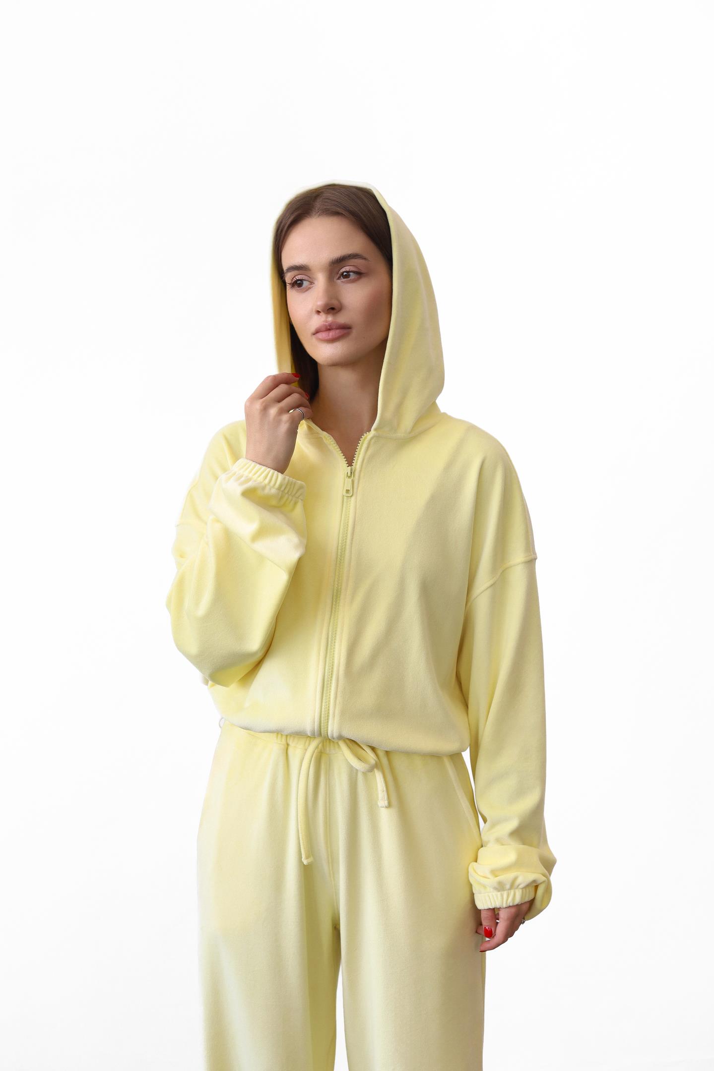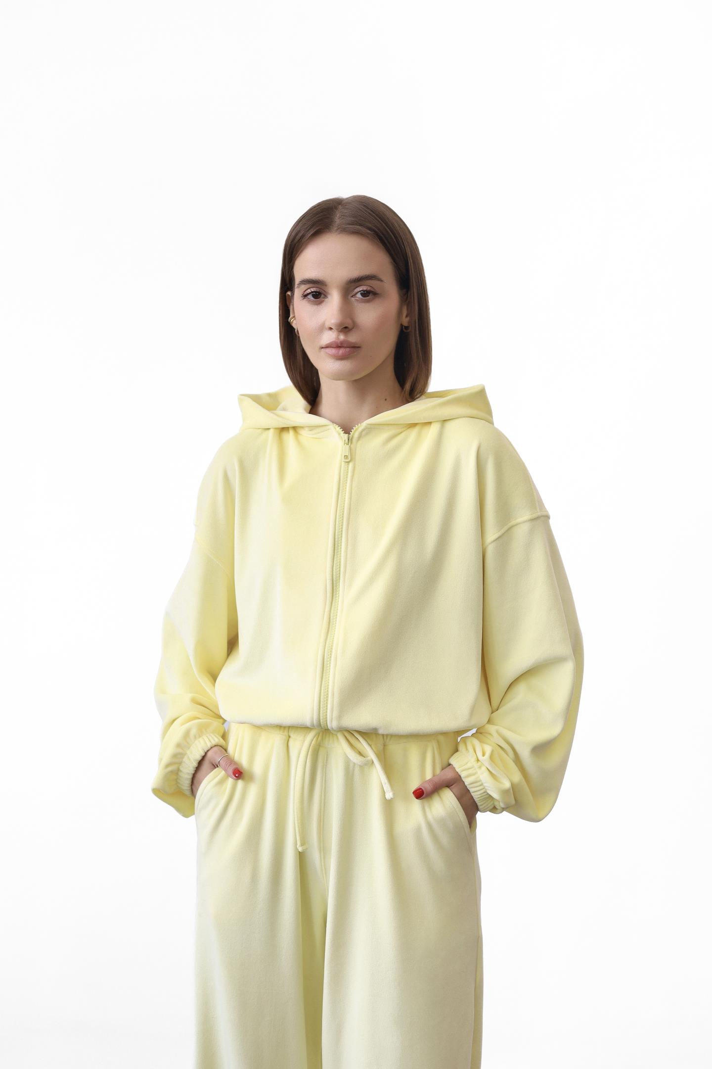 Головна Жінкам Кофти, боді и гольфи Жіноча велюрова кофта на блискавці Лимон