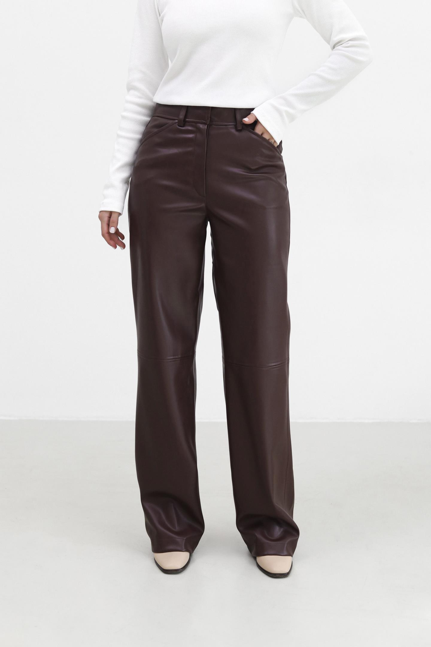 Головна Жінкам Штани та шорти Жіночі шкіряні штани Шоколад