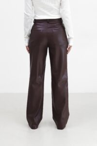 Шкіряні штани зі зручною посадкою та стильним акцентом на коліні. Модель м’яко лягає по фігурі, підкреслюючи силует, а декоративний шов на коліні додає образу виразності та трендовості. Завдяки продуманому крою штани виглядають акуратно й поєднуються з будь-яким верхом.