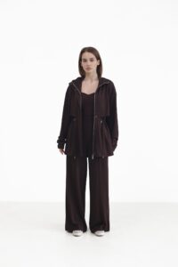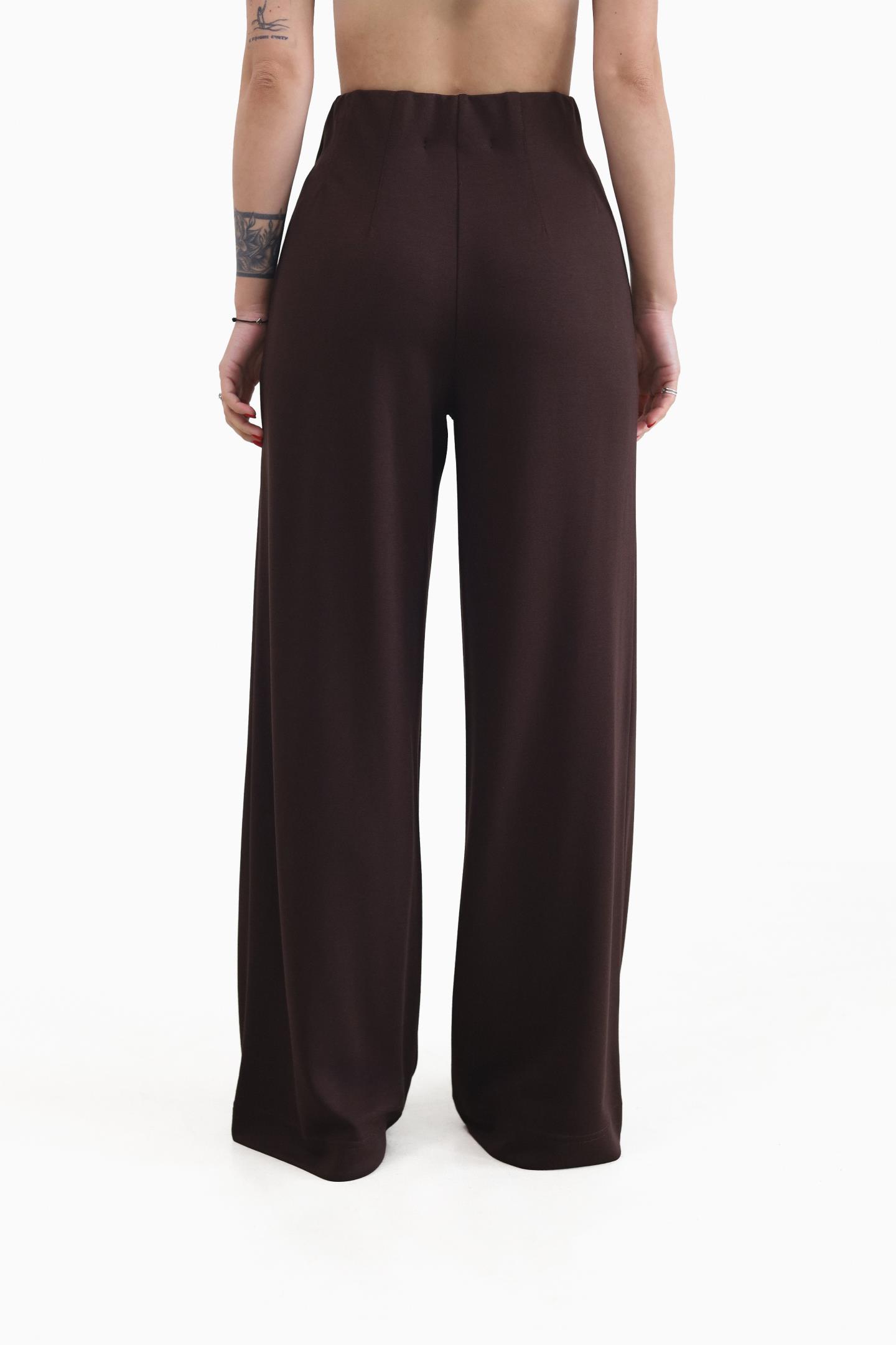 Жіночі штани палаццо з високою посадкою-витончений акцент на талію та бездоганний силует. Вільний крій візуально подовжує ноги, а відстрочені стрілки додають структурності й роблять образ більш зібраним.Еластичний пояс забезпечує комфортну посадку протягом дня. Легко стилізуються під будь-який образ