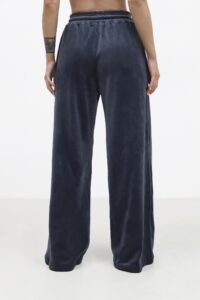 Велюрові штани — м’які, теплі та приємні до тіла. Вільний крій і висока посадка комфортно підкреслюють фігуру. Еластичний пояс зі шнурком і прорізні кишені додають зручності, а легкий шовковистий блиск створює акуратний вигляд. Ідеальні для прогулянок, дому та casual-образів.