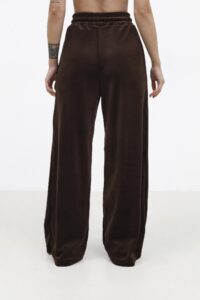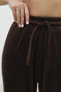 Велюрові штани — м’які, теплі та приємні до тіла. Вільний крій і висока посадка комфортно підкреслюють фігуру. Еластичний пояс зі шнурком і прорізні кишені додають зручності, а легкий шовковистий блиск створює акуратний вигляд. Ідеальні для прогулянок, дому та casual-образів.