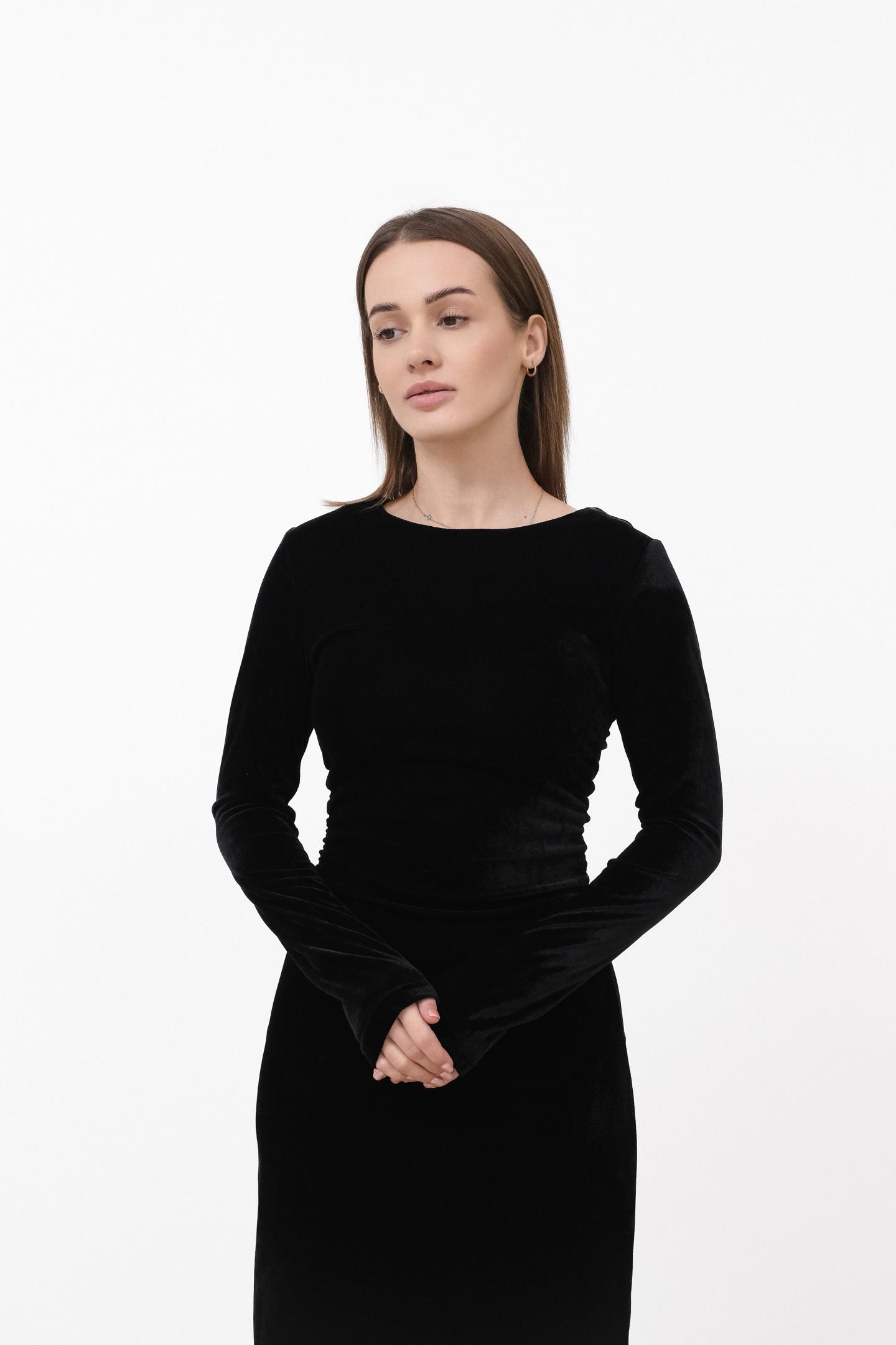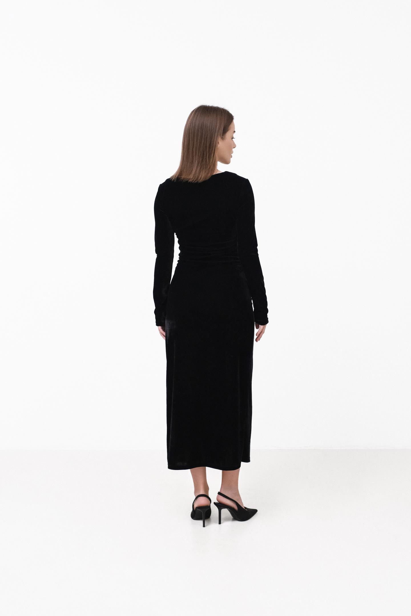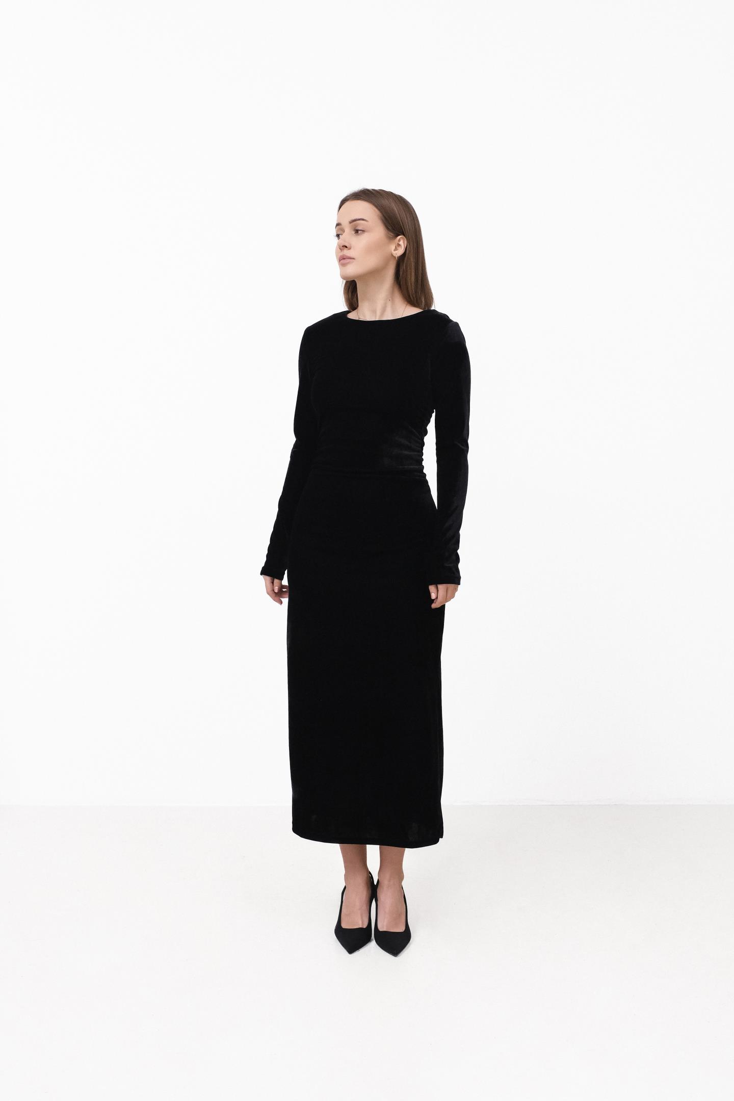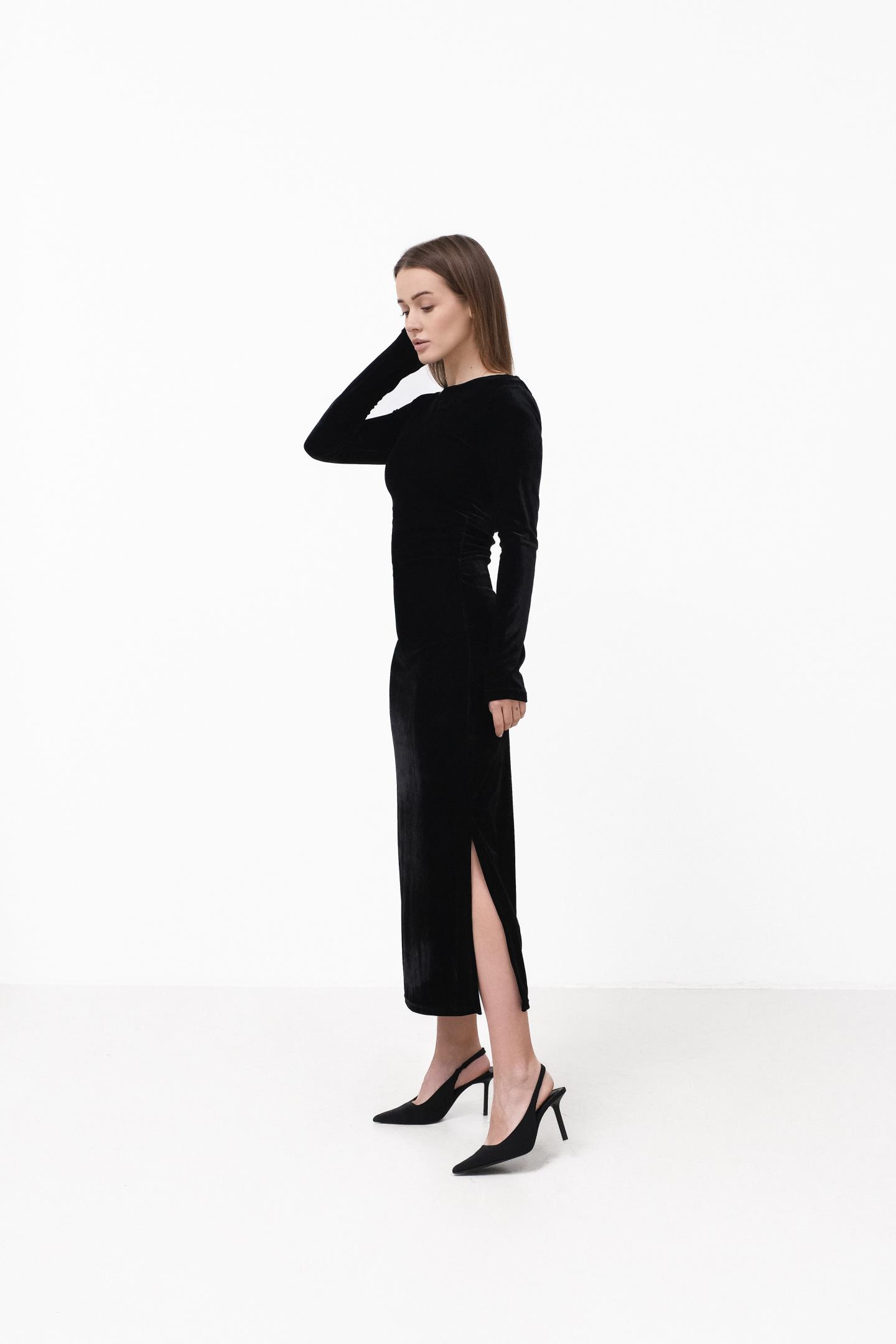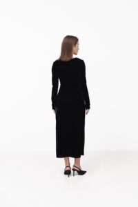 Жіночна сукня міді з м’якого трикотажу, яка комфортно сідає по фігурі та красиво підкреслює силует. Довгий рукав і стримана горловина дозволяють легко адаптувати модель як денних образів, так і для більш вишуканих вечірніх виходів, а розріз знизу додає легкості рухам і витонченого акценту.