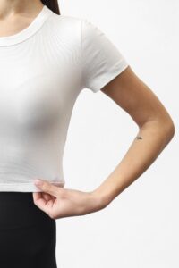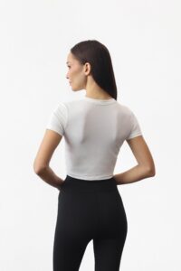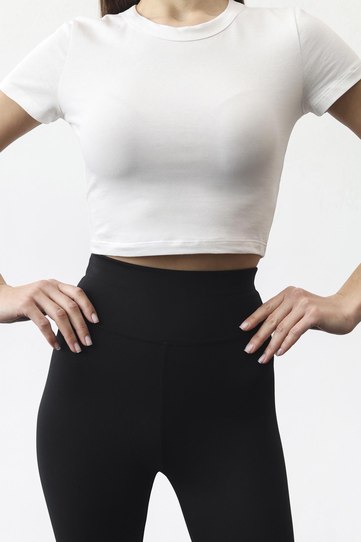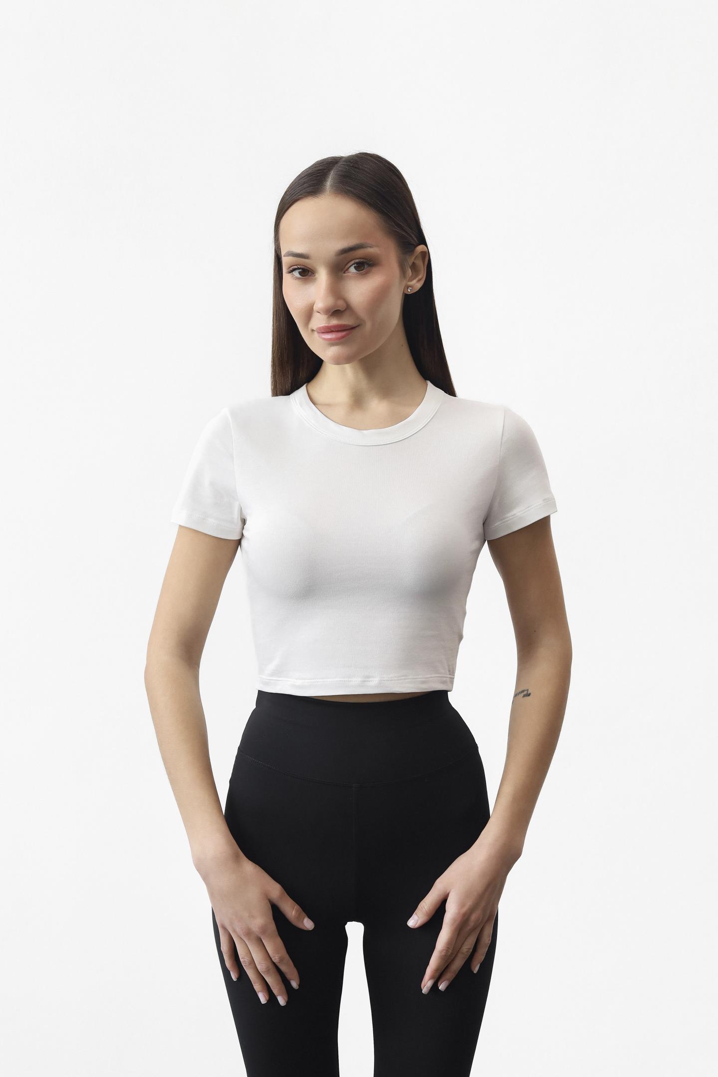 Кроп-топ із короткими рукавами — м’який та приємний до тіла базовий варіант для сучасного образу. Гладка еластична тканина не просвічується і чудово тримає форму. Укорочений крій відкриває талію, додаючи легкості та сучасності. Ідеально підходить для створення стильного та модного образу