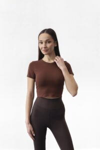 Кроп-топ із короткими рукавами — м’який та приємний до тіла базовий варіант для сучасного образу. Гладка еластична тканина не просвічується і чудово тримає форму. Укорочений крій відкриває талію, додаючи легкості та сучасності. Ідеально підходить для створення стильного та модного образу