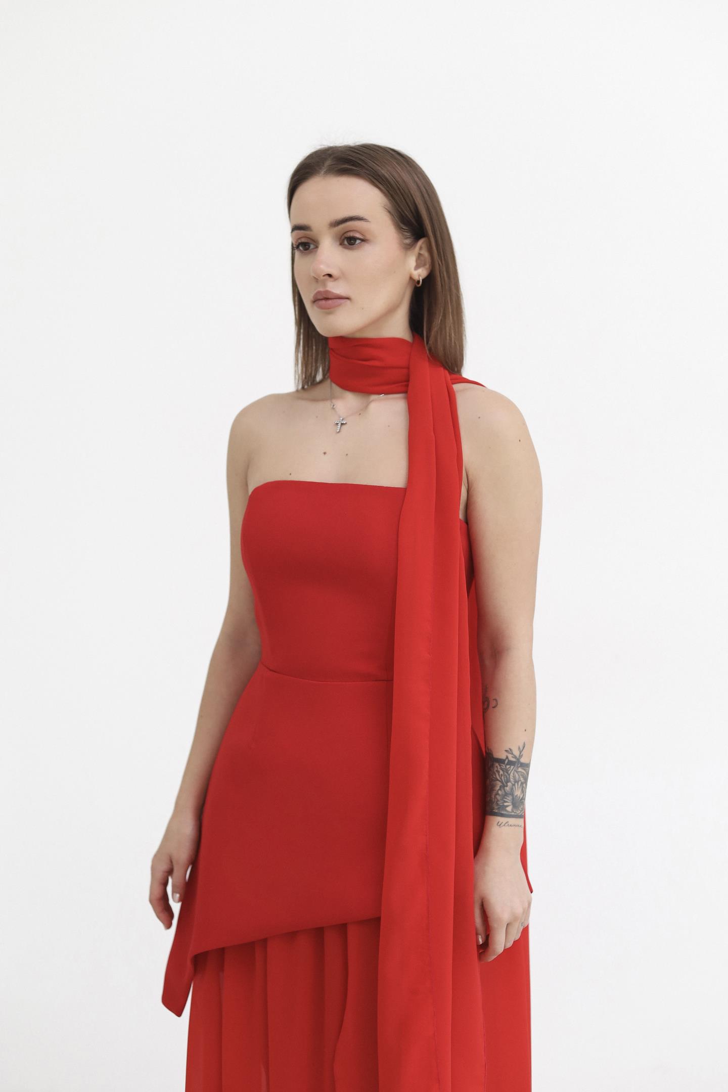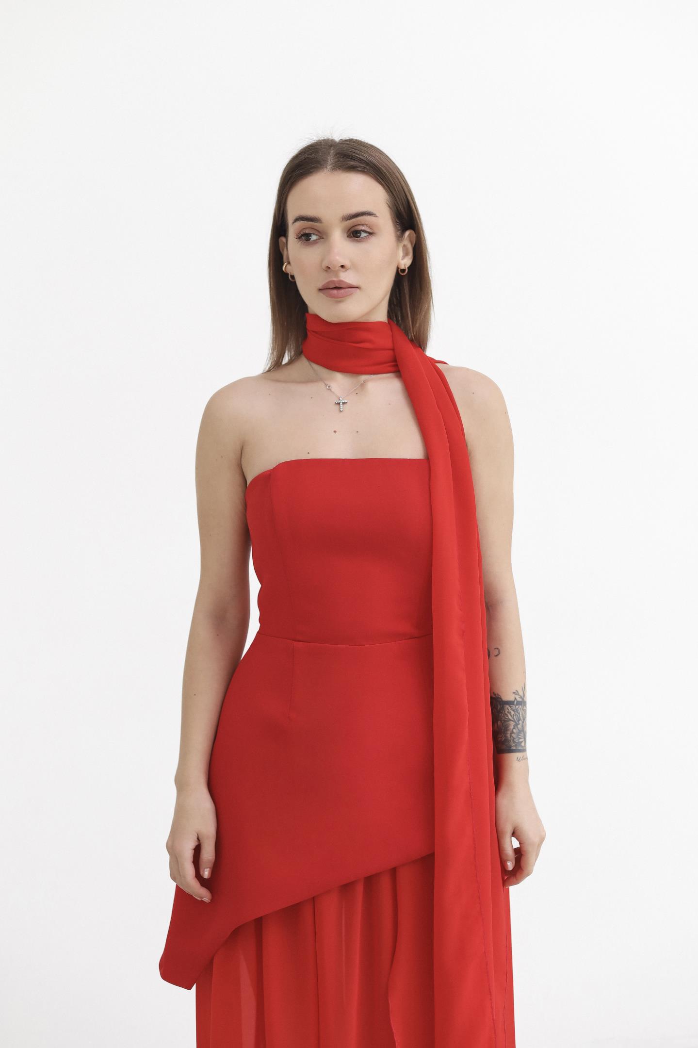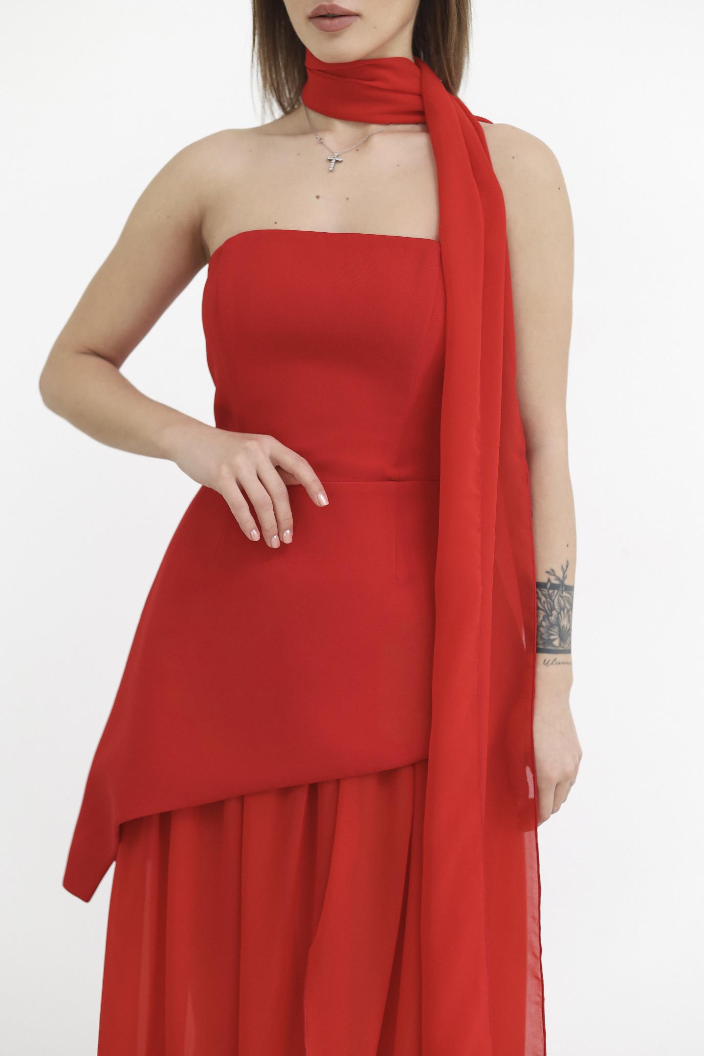 Головна Жінкам Сукні Жіночий комплект із сукні та прозорої спідниці Червоний