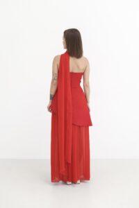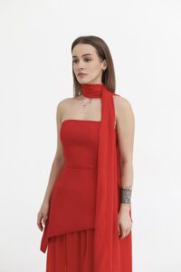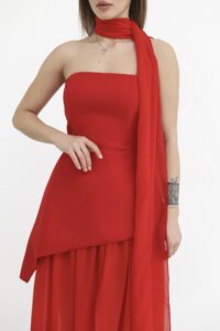 Жіноче плаття-трійка — вишуканий комплект, що складається з сукні, легкої спідниці та шарфа, який додає образу завершеності. Асиметричний крій підкреслює фігуру, а легкий фатин додає руху й повітряності. Шарф завершує образ і дозволяє варіювати стилізацію. Ідеальний вибір для особливих моментів.