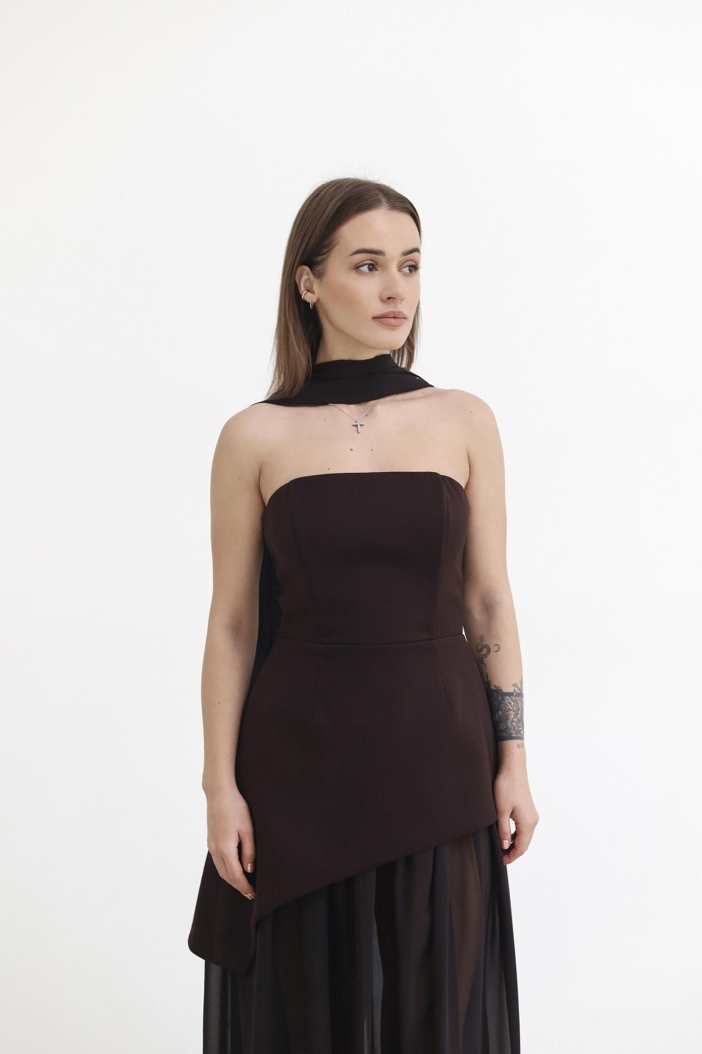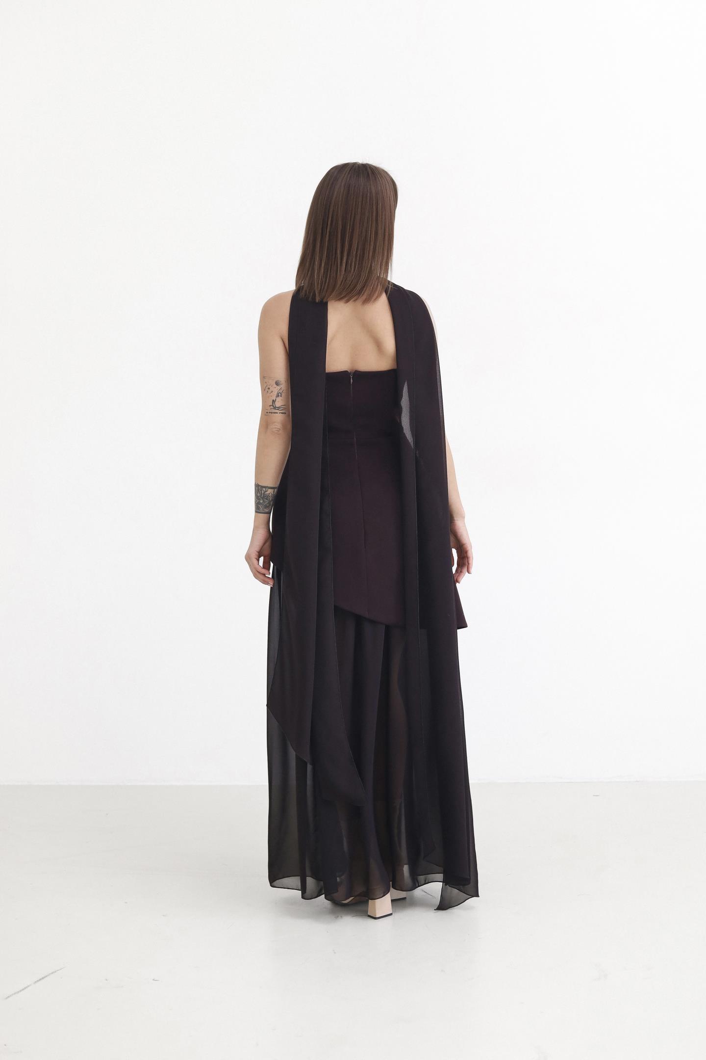 Головна Жінкам Сукні Жіночий комплект із сукні та прозорої спідниці Шоколад