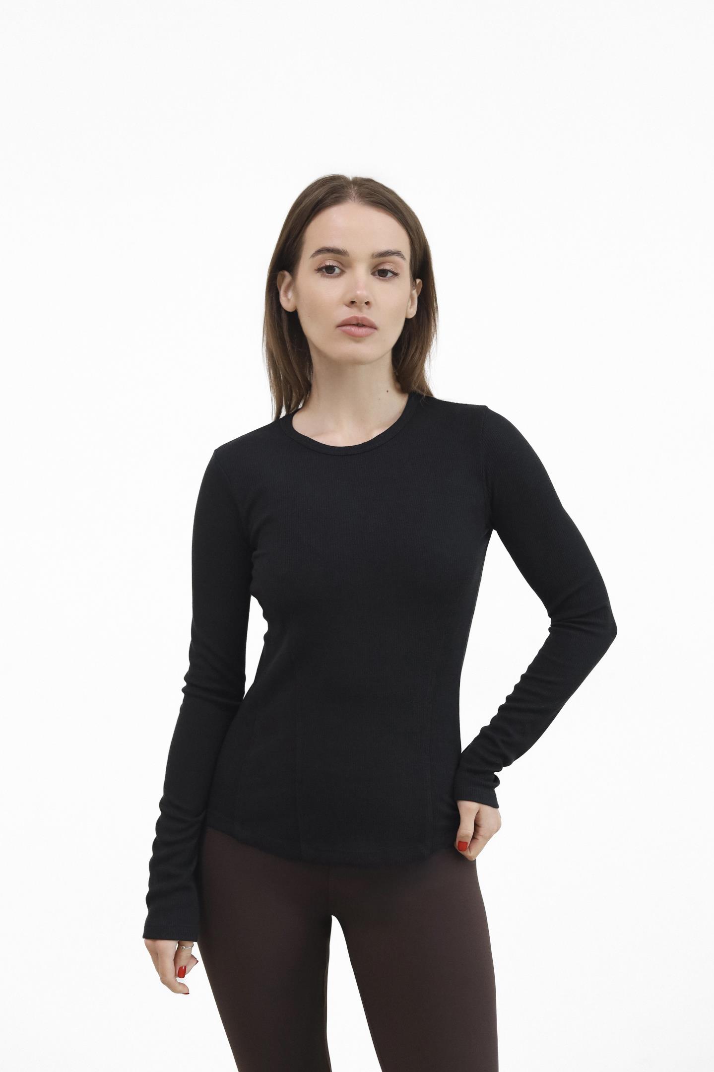 Головна Жінкам Футболки, топи та лонгсліви Жіночий лонгслів в рубчик Чорний