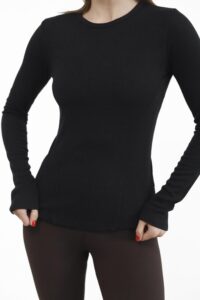 Жіночий лонгслів з однотонного рубчика-стильна та універсальна база гардероба. Обтислий крій із фігурними швами підкреслює силует, а круглий виріз і відстрочка додають виразності. Еластична тканина м’яко прилягає до тіла та забезпечує зручність у носінні. Лонгслів легко стилізувати в різних образах