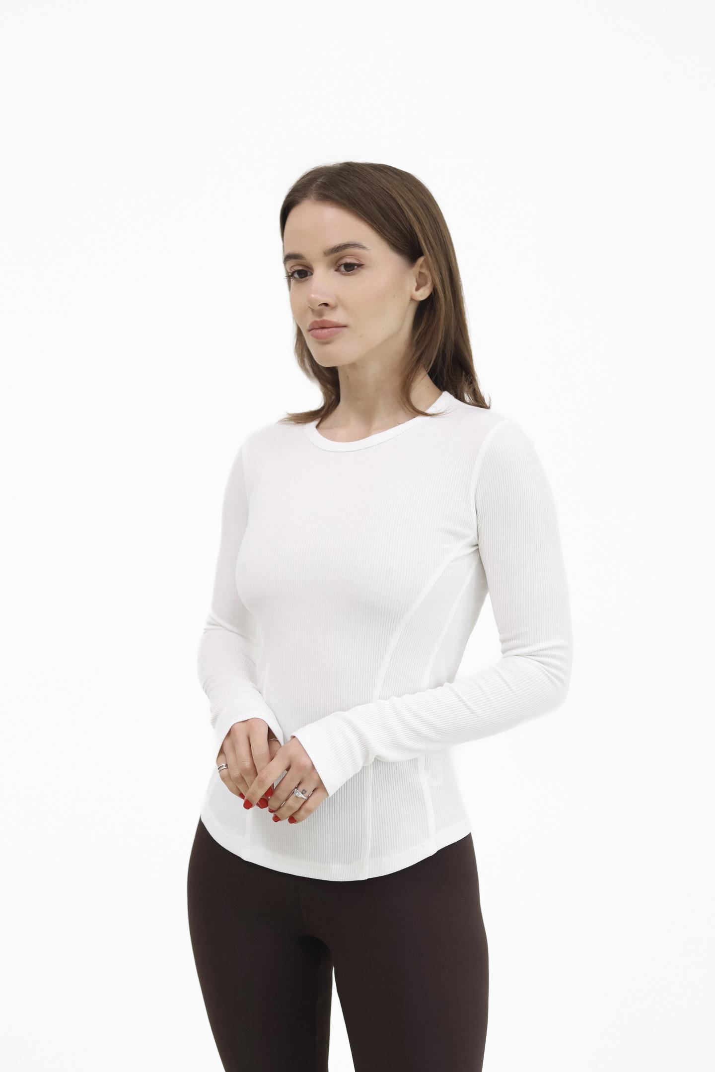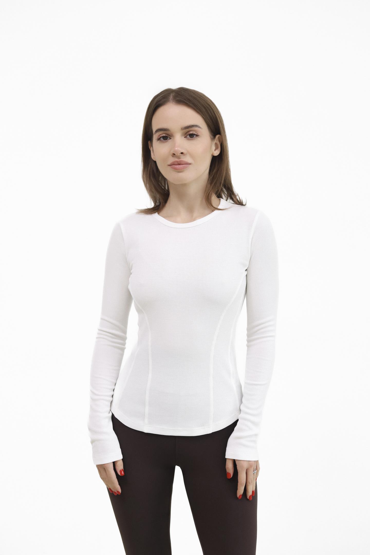 Головна Жінкам Футболки, топи та лонгсліви Жіночий лонгслів в рубчик Молоко