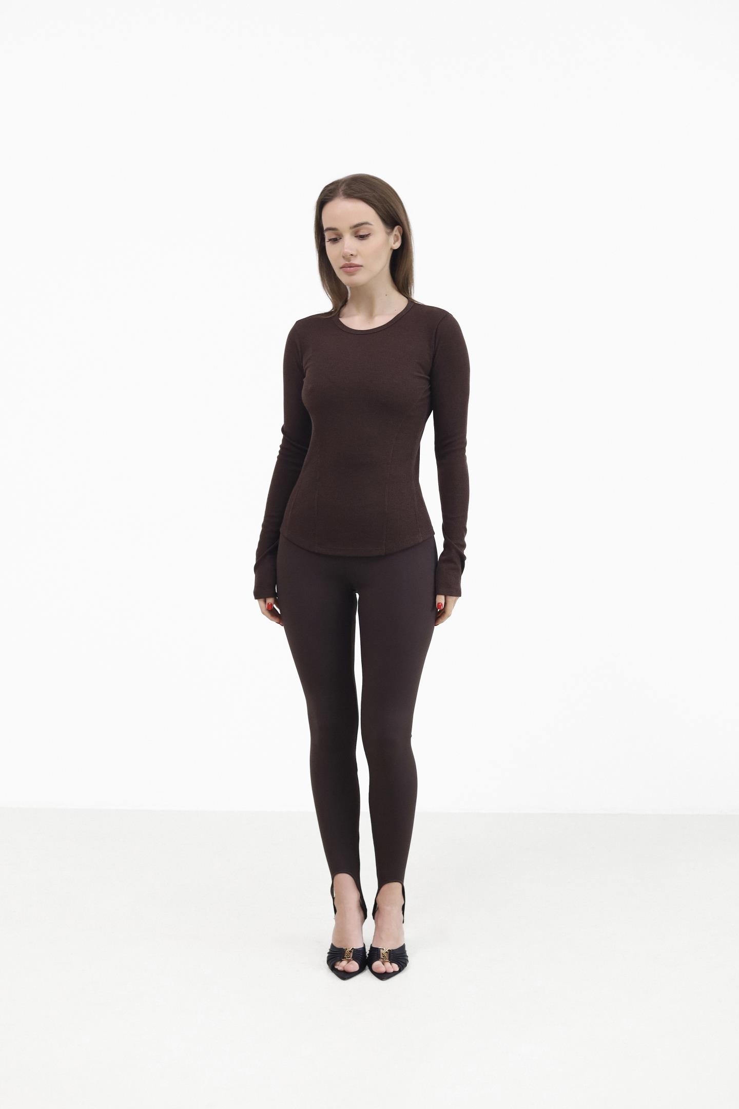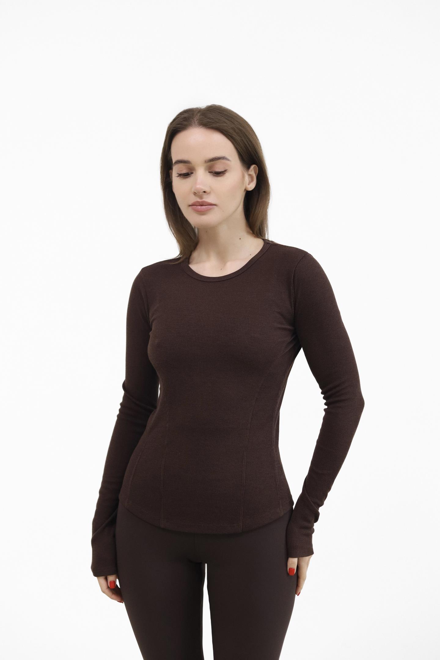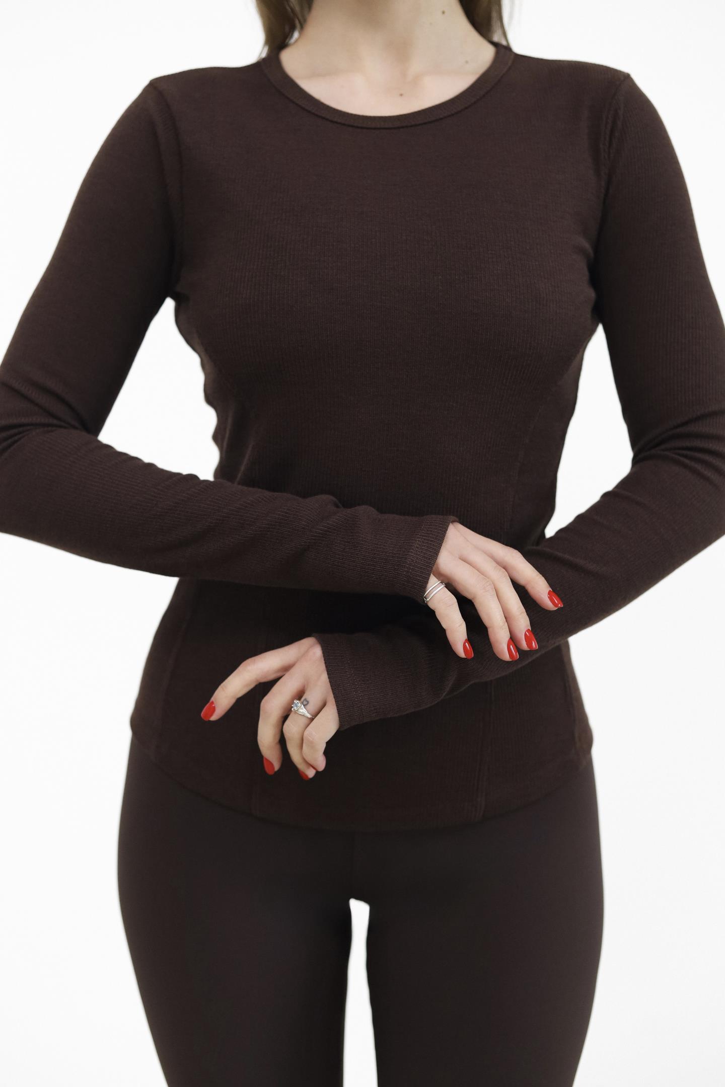 Жіночий лонгслів в рубчик Шоколад