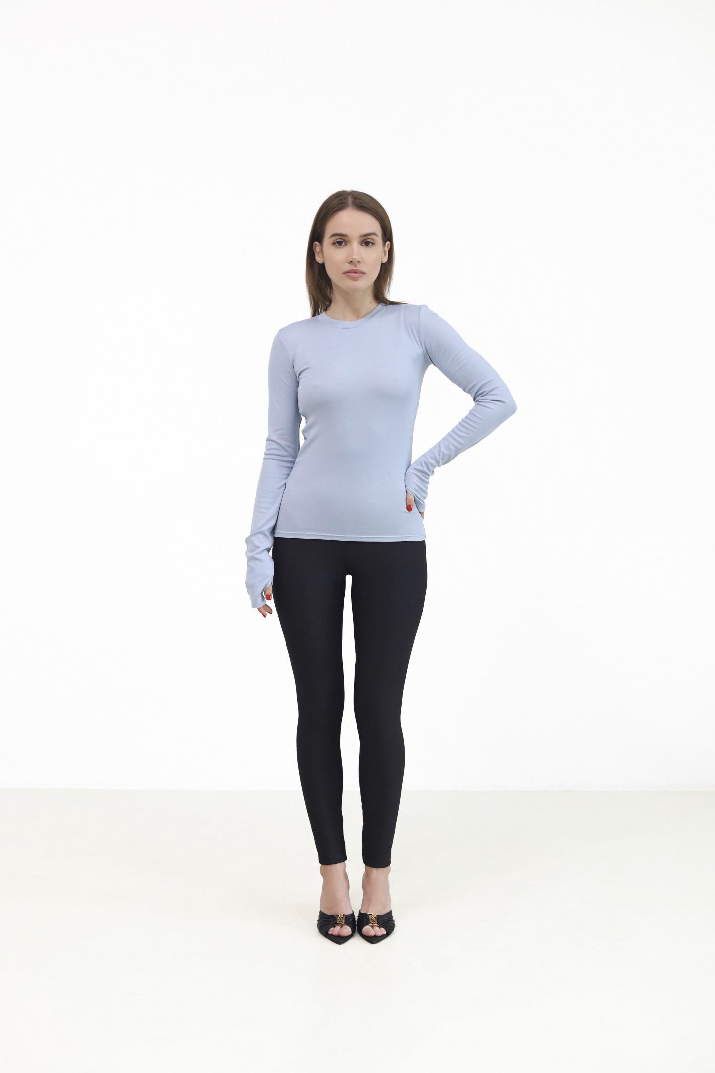 Головна Жінкам Футболки, топи та лонгсліви Жіночий однотонний лонгслів Блакитний
