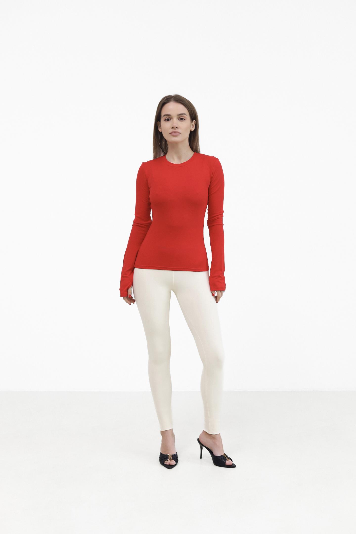 Базовий жіночий лонгслів – універсальна річ для будь-якого випадку. Обтягуючий крій з довгими рукавами та з отвором для пальця надає образу сучасного шарму, а акуратний круглий виріз робить його ідеальною базою для будь-якого гардеробу, додаючи стильних акцентів вашим образам