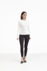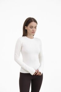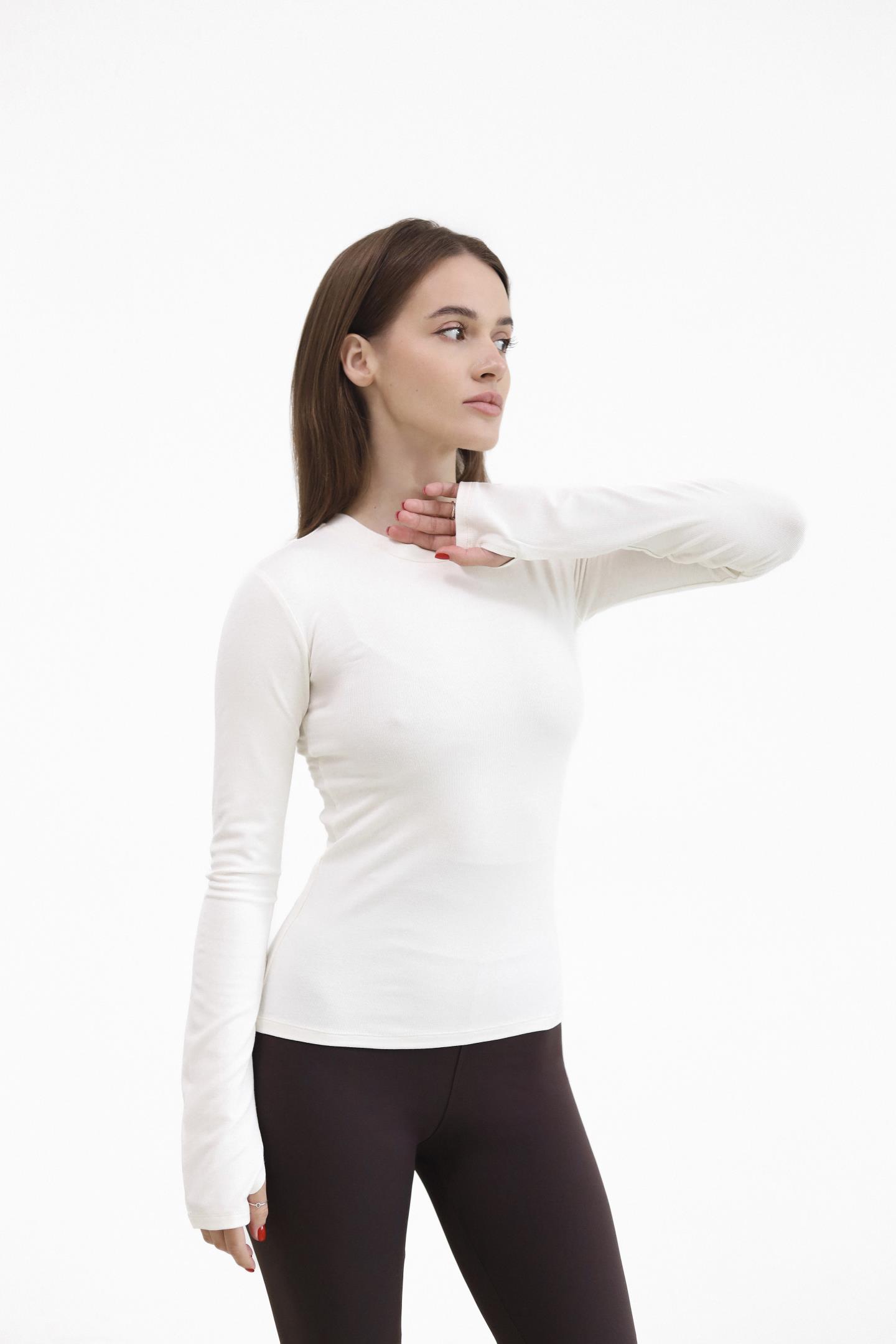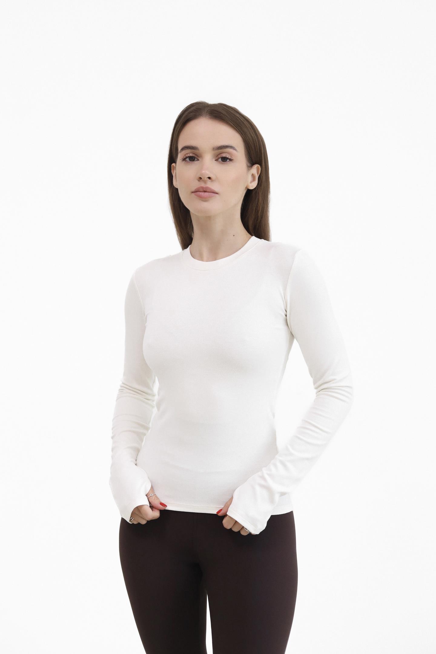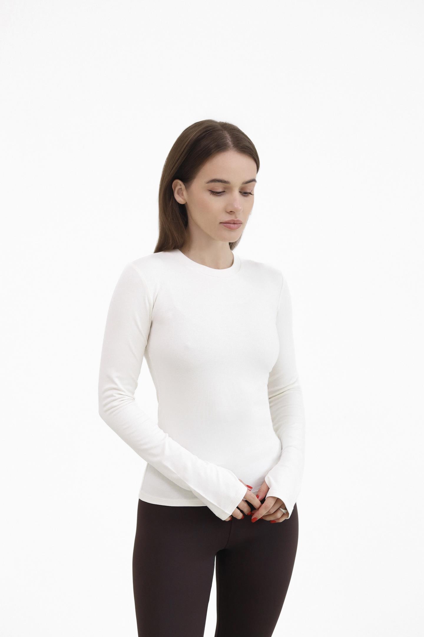 Базовий жіночий лонгслів – універсальна річ для будь-якого випадку. Обтягуючий крій з довгими рукавами та з отвором для пальця надає образу сучасного шарму, а акуратний круглий виріз робить його ідеальною базою для будь-якого гардеробу, додаючи стильних акцентів вашим образам