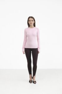 Базовий жіночий лонгслів – універсальна річ для будь-якого випадку. Обтягуючий крій з довгими рукавами та з отвором для пальця надає образу сучасного шарму, а акуратний круглий виріз робить його ідеальною базою для будь-якого гардеробу, додаючи стильних акцентів вашим образам
