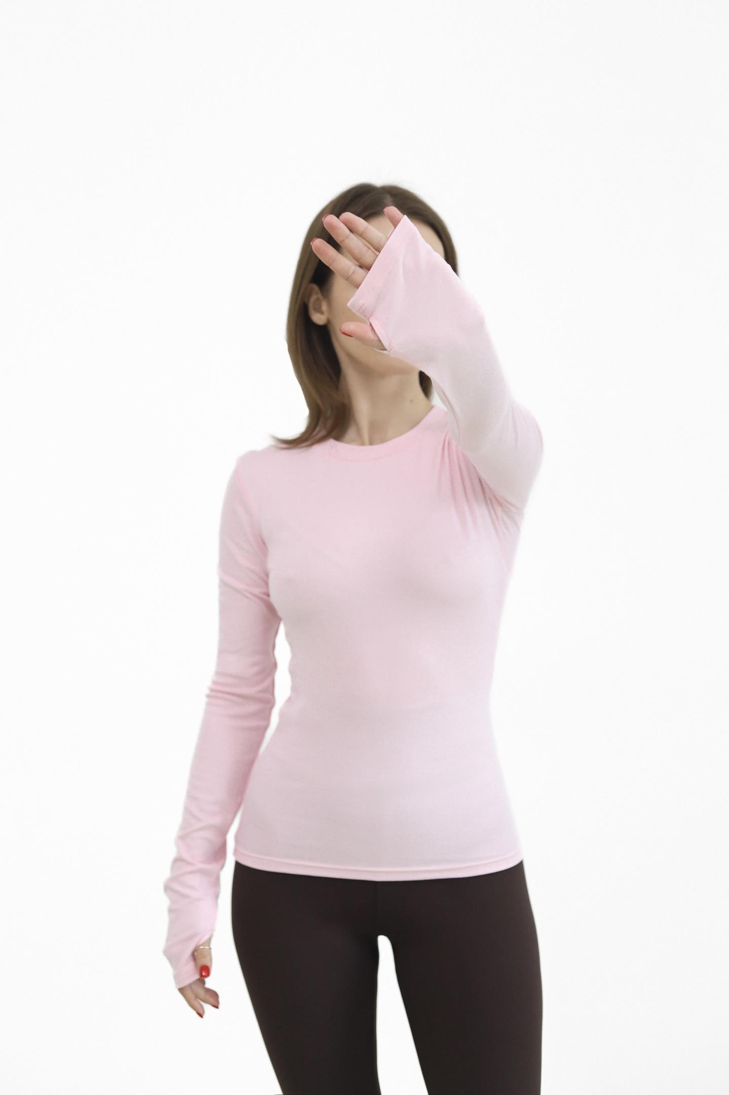 Головна Жінкам Футболки, топи та лонгсліви Жіночий однотонний лонгслів Рожевий