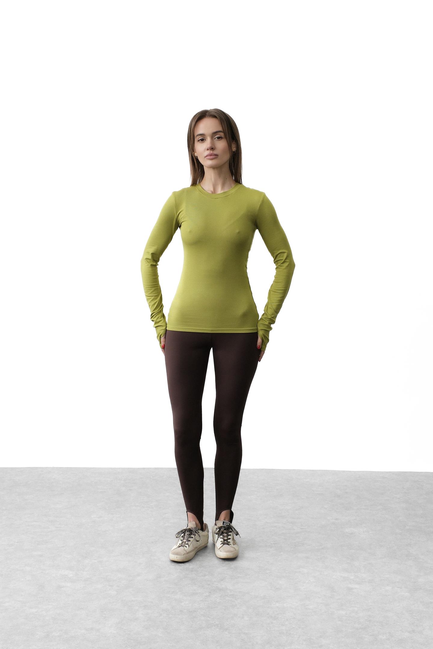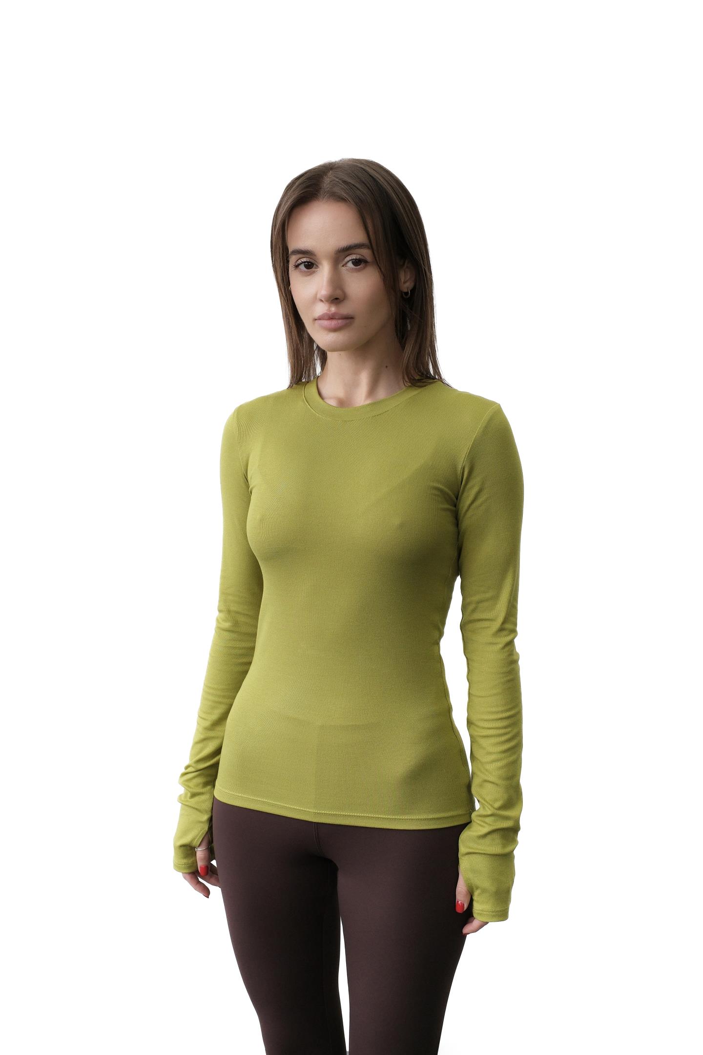 Базовий жіночий лонгслів – універсальна річ для будь-якого випадку. Обтягуючий крій з довгими рукавами та з отвором для пальця надає образу сучасного шарму, а акуратний круглий виріз робить його ідеальною базою для будь-якого гардеробу, додаючи стильних акцентів вашим образам