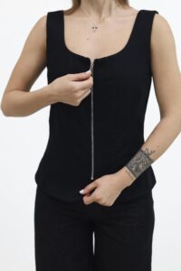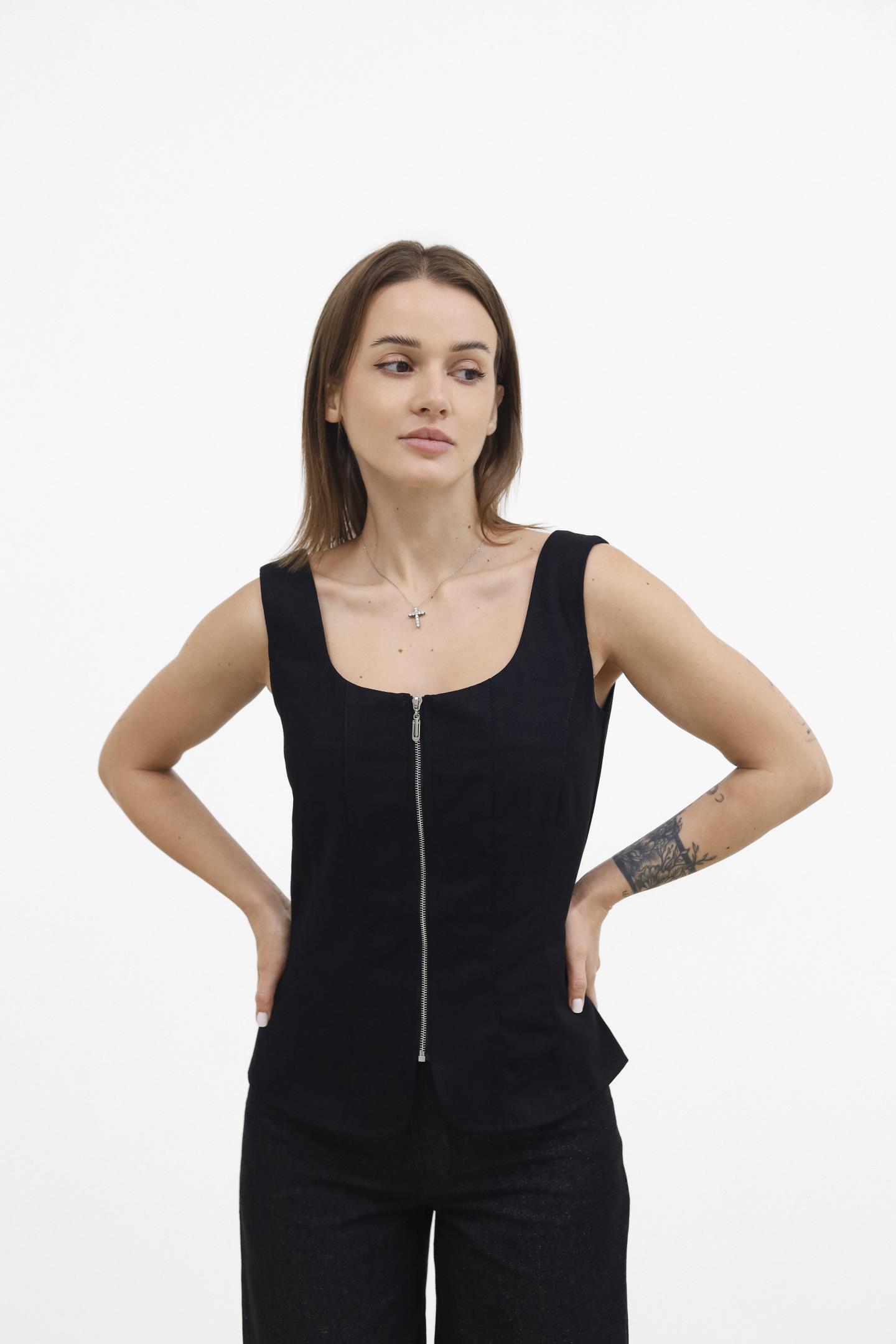 Корсет класичного силуету делікатно підкреслює фігуру та комфортно сидить по тілу завдяки продуманому крою. Виконаний із поєднання якісних тканин, він додає образу вишуканості й легко комбінується з різним одягом. Зручна застібка на блискавці забезпечує ідеальну посадку без зайвих зусиль.