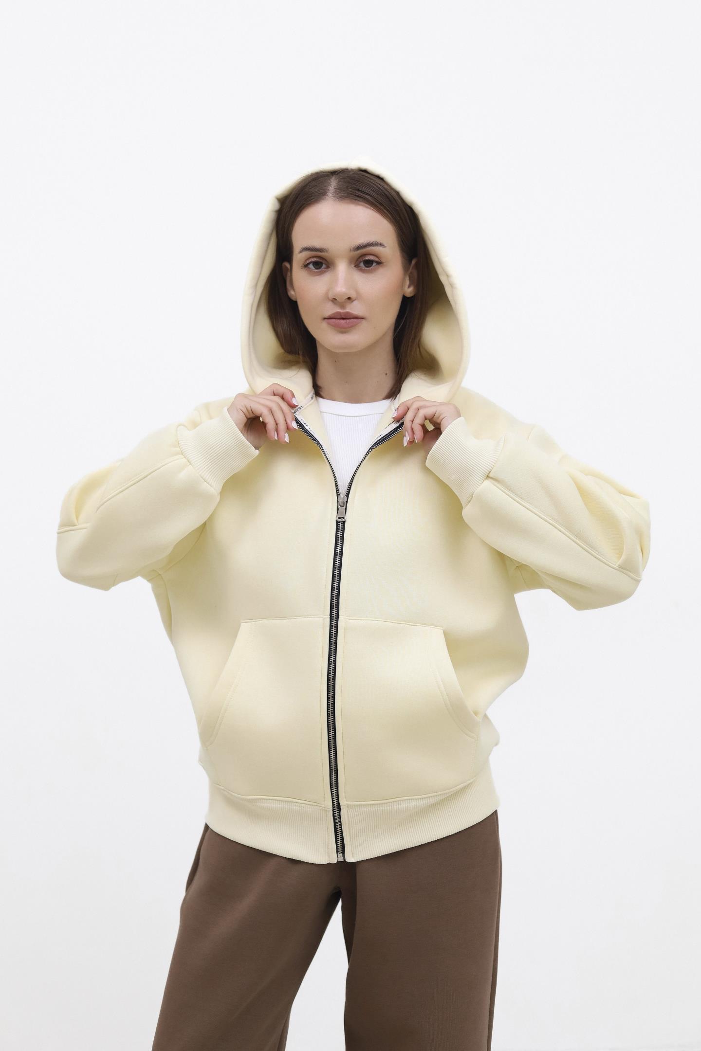 Головна Жінкам Худі, світшоти та толстовки Утеплене зіп-худі з капюшоном Лимон